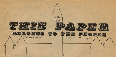 Right: Power to the People vol. 1, no. 15 (April 1970). Cover illustration. From the Ottawa Women's Place fonds (10-020) at University of Ottawa Archives and Special Collections.