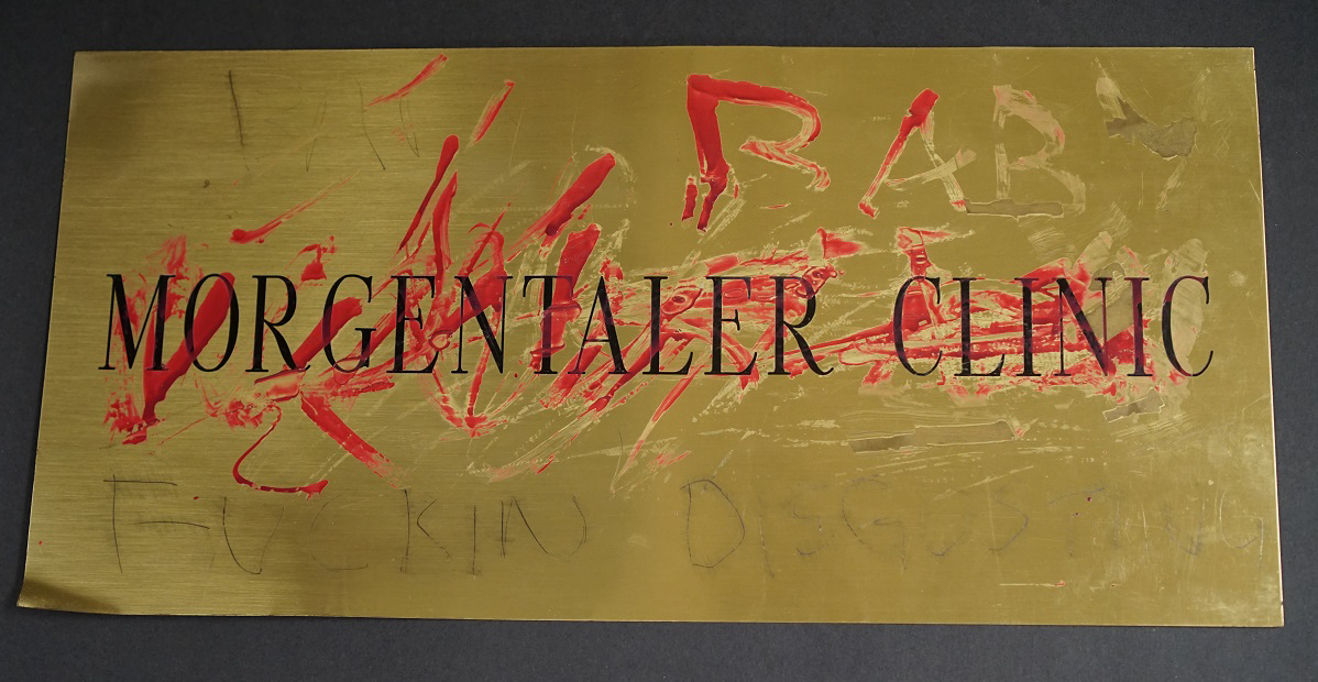 Between 1983 and the landmark Supreme Court case R v Morgentaler in 1988, Morgentaler and his clinics were repeatedly attacked by members of the anti-choice movement. During this time, Morgentaler and other doctors who provided abortions experienced frequent violence, harassment, and death threats. For example, in 1983, Morgentaler was attacked with garden shears outside of his Toronto clinic (Fortunately, however, the attack was blocked by pro-choice activist Judy Rebick). In that same year, the clinic was firebombed, nearly destroying the neighboring Toronto Women's Bookstore. Such attacks on doctors and women's health clinics continued into the 1990s and early 2000s.