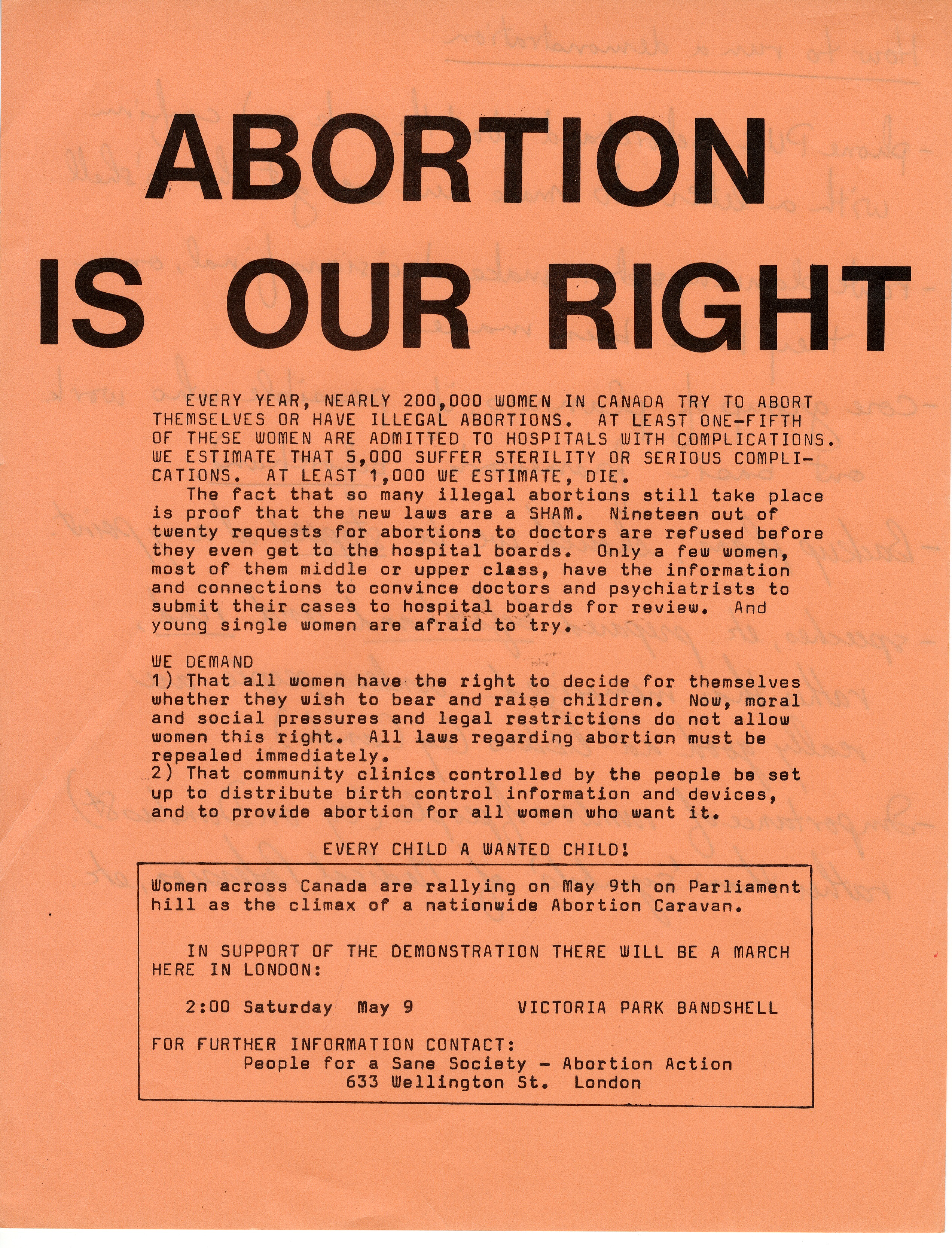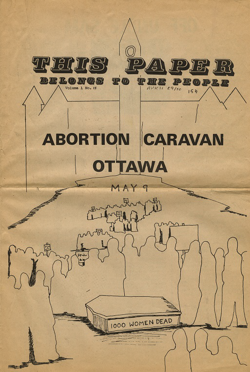 Left: People for a Sane Society. "Abortion is Our Right." Flyer (May 1970). From the Ottawa Women's Place fonds (10-020) at University of Ottawa Archives and Special Collections.