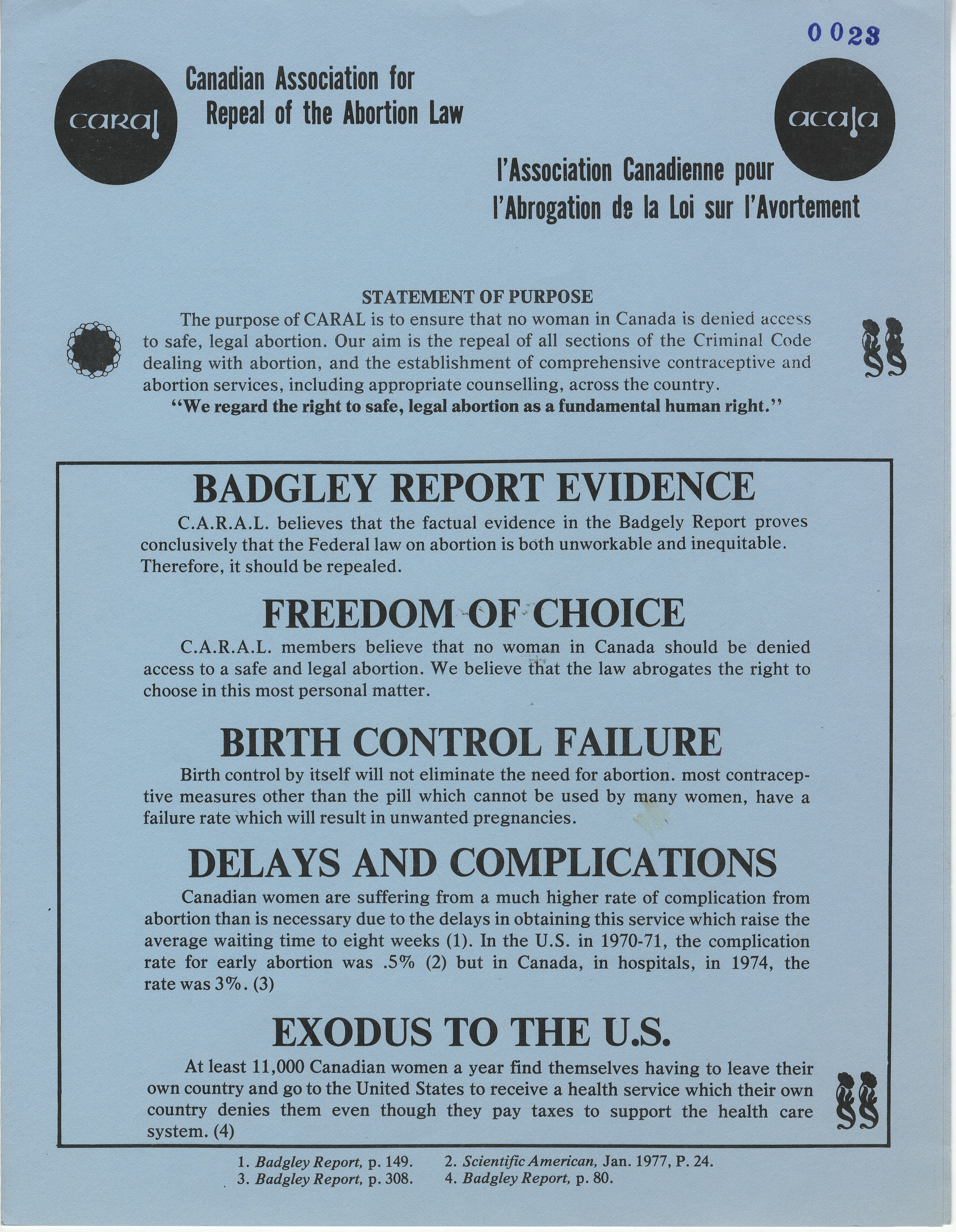 "Canadian Abortion Rights Action League (CARAL)." Rise Up! A Digital Archive of Feminist Action. https://riseupfeministarchive.ca/activism/organizations/canadian-abortion-rights-action-league-association-caral/