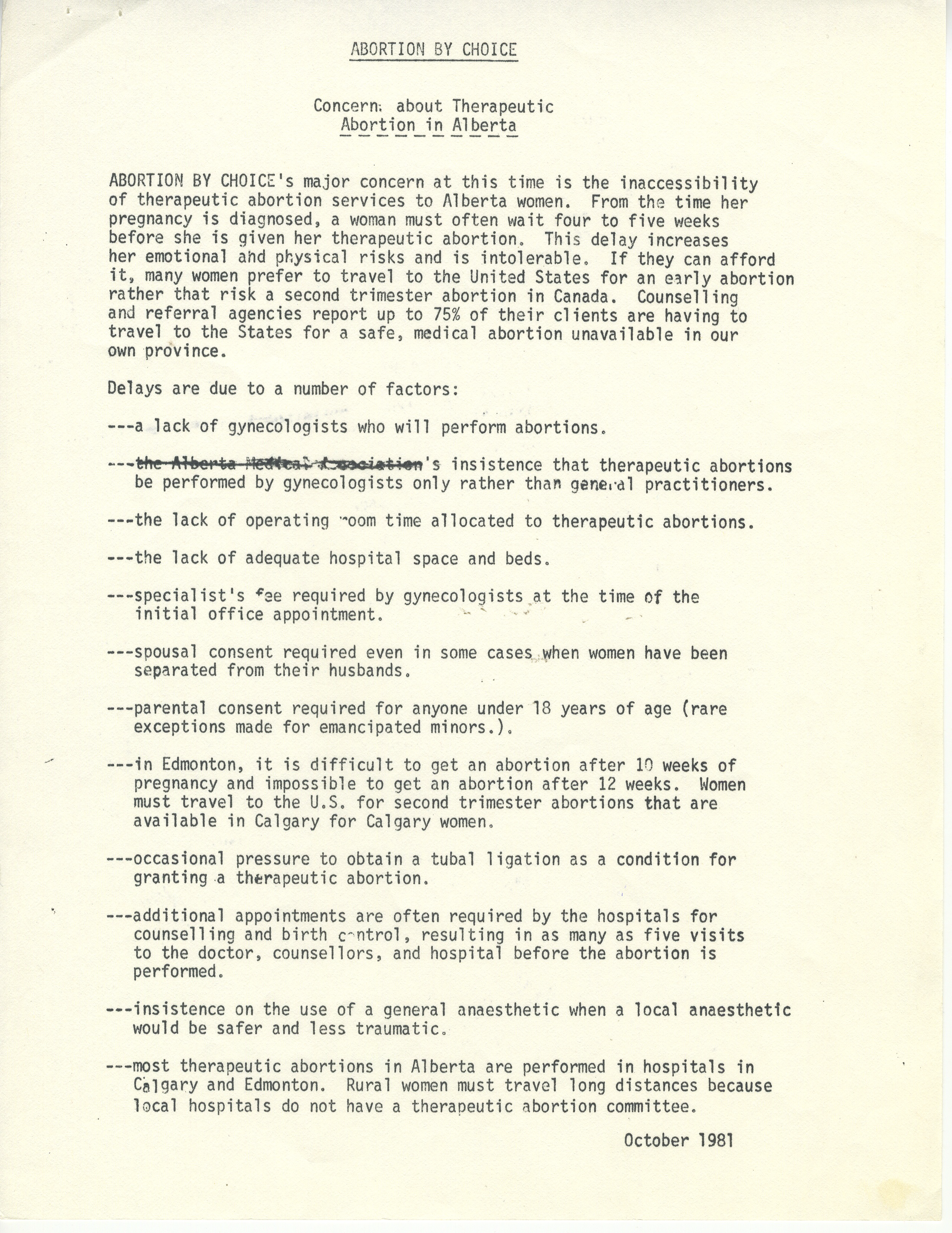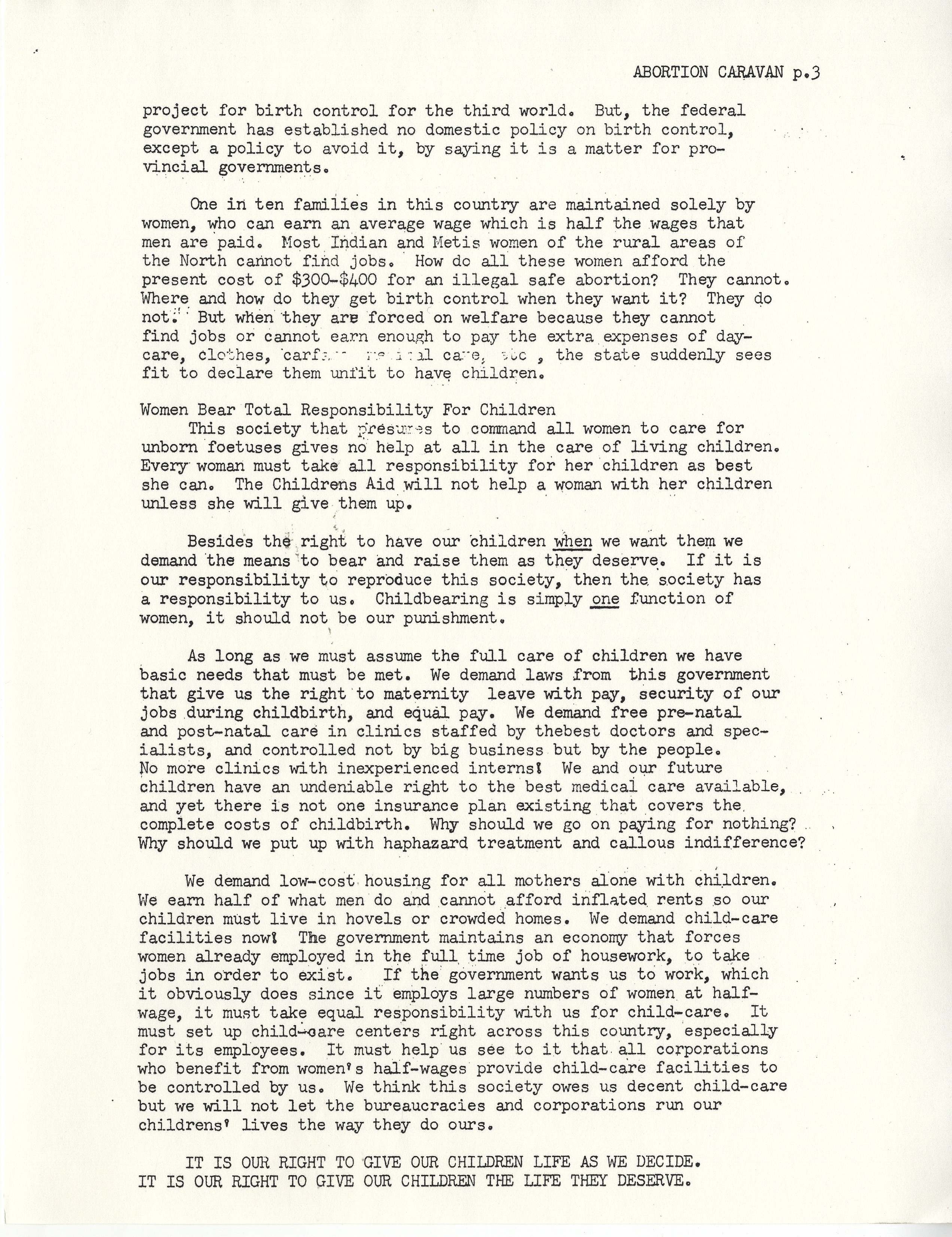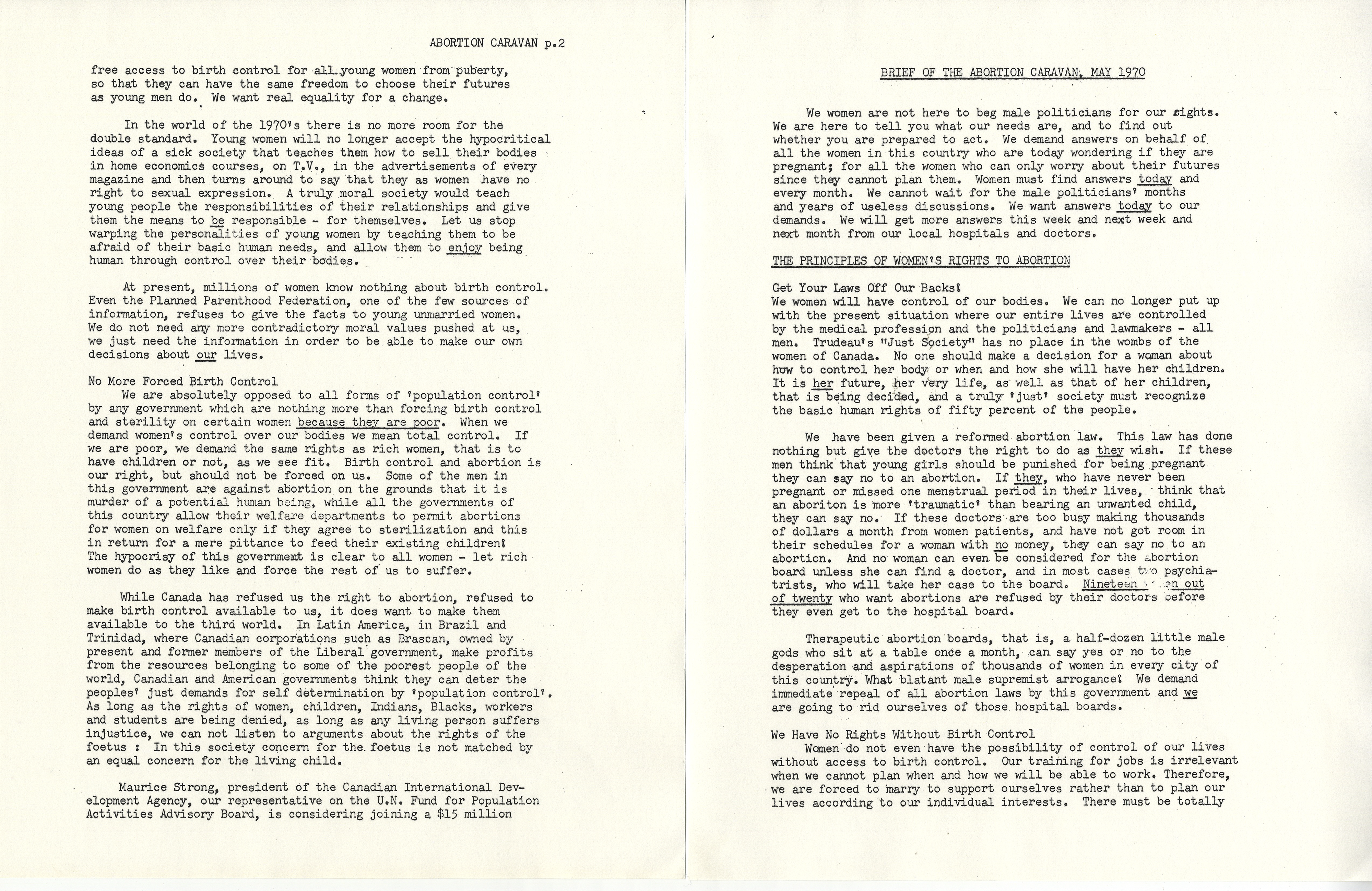 Left: Vancouver Women's Caucus. "Brief of the Abortion Caravan" (May 1970). From the Ottawa Women's Place fonds (10-020) at University of Ottawa Archives and Special Collections.