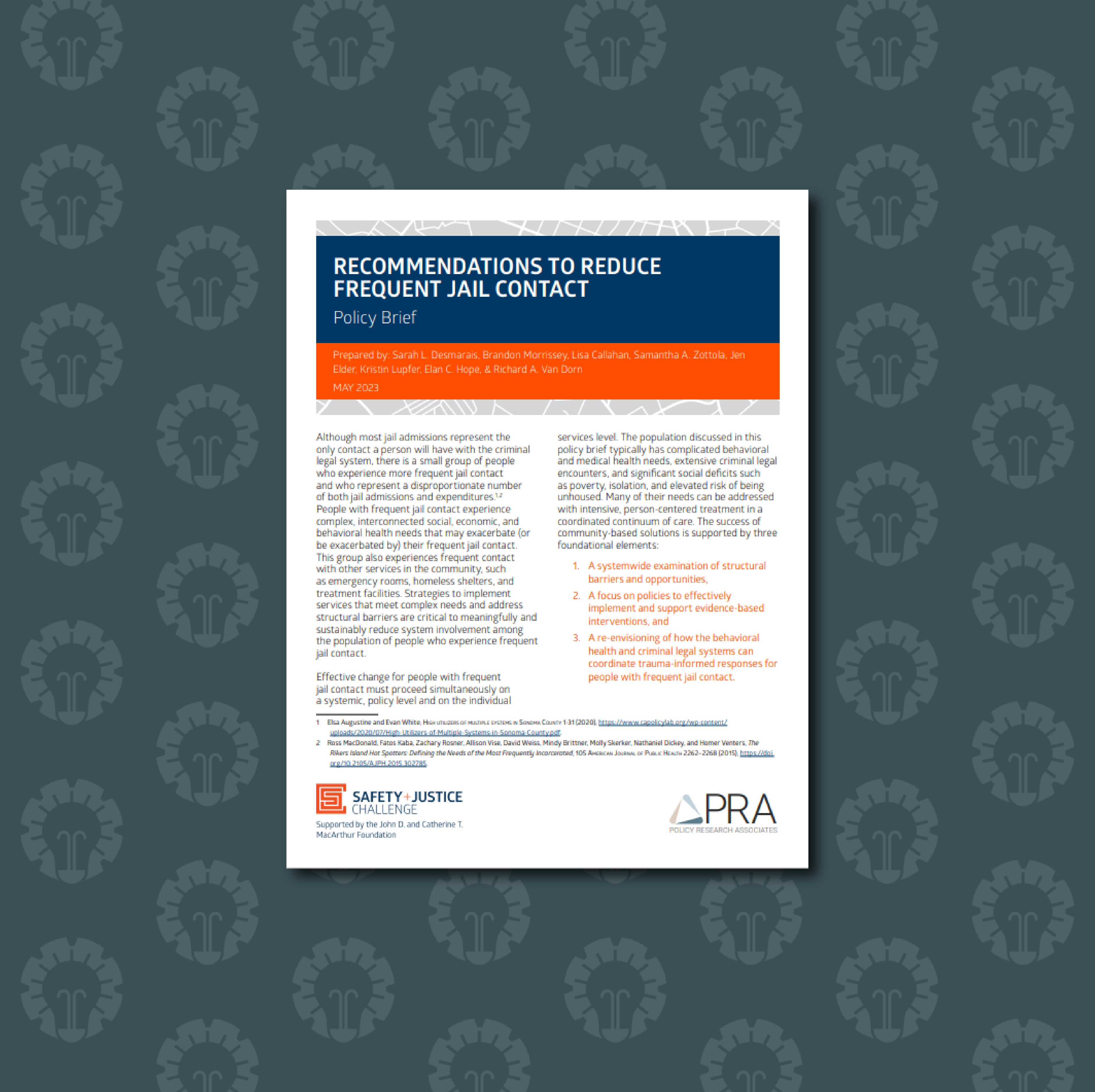 Based on the findings, the researchers developed the following recommendations to help communities address the needs of people experiencing frequent jail contact toward the goal of reducing future contact:
