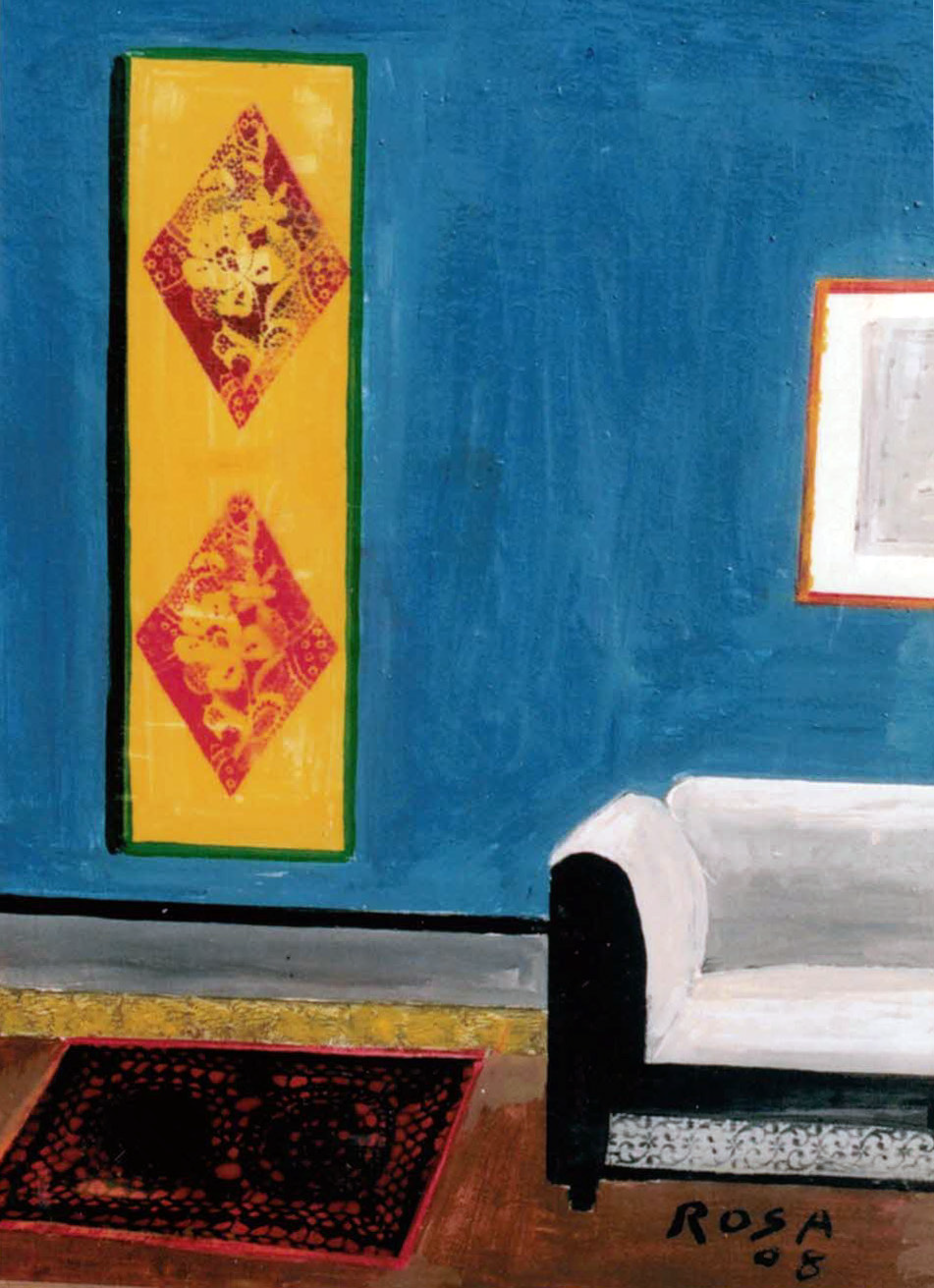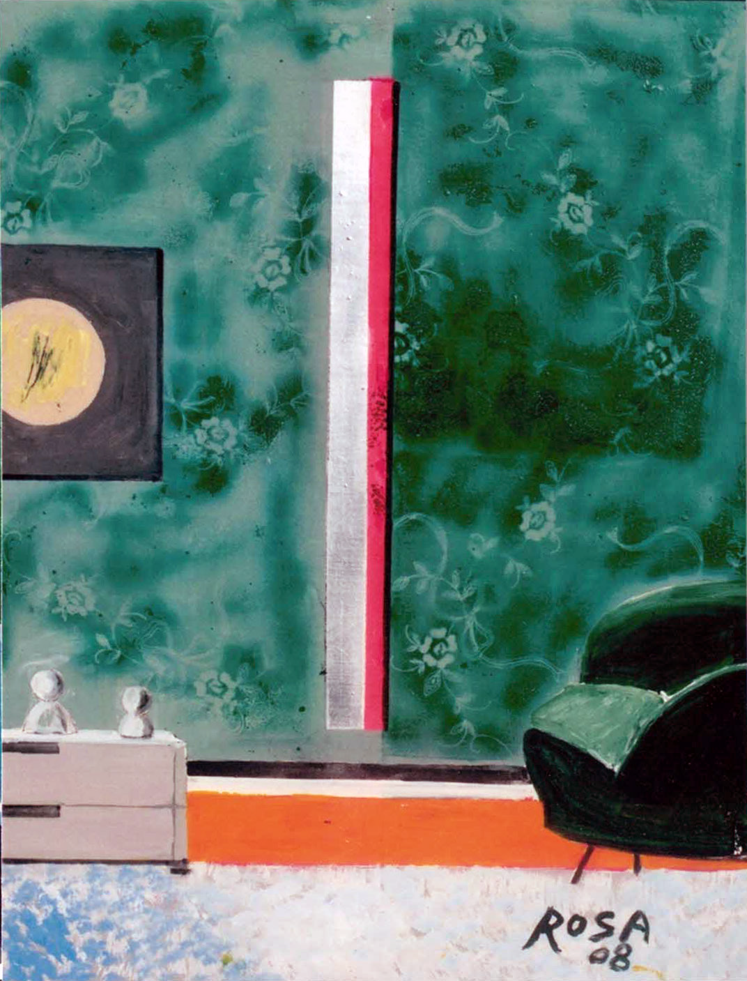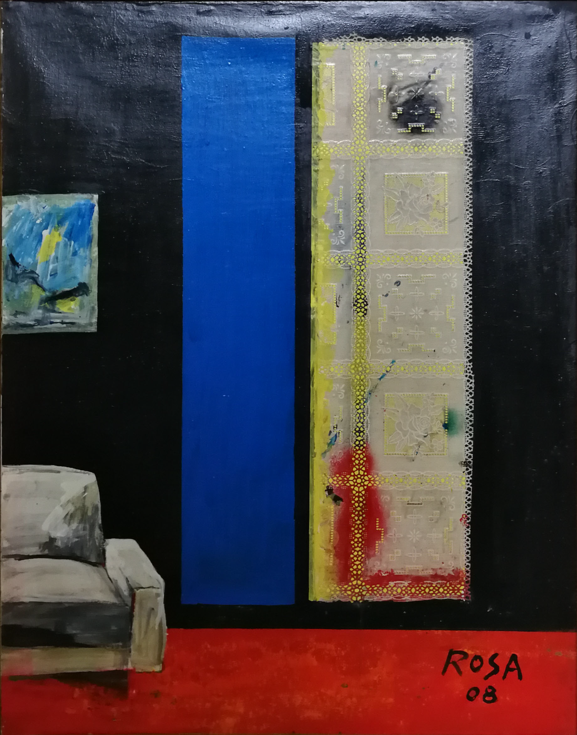 Nella visione di Rosa lo spazio architettonico non è inteso come ambiente funzionale e tridimensionale ma come orgiastico accostamento di forme e cromie da estrapolare per realizzare nuove ed originali sperimentazioni visuali. Masse, linee e forme diventano capaci di definire soluzioni improbabili e nuovi concetti estetico-espressivi.