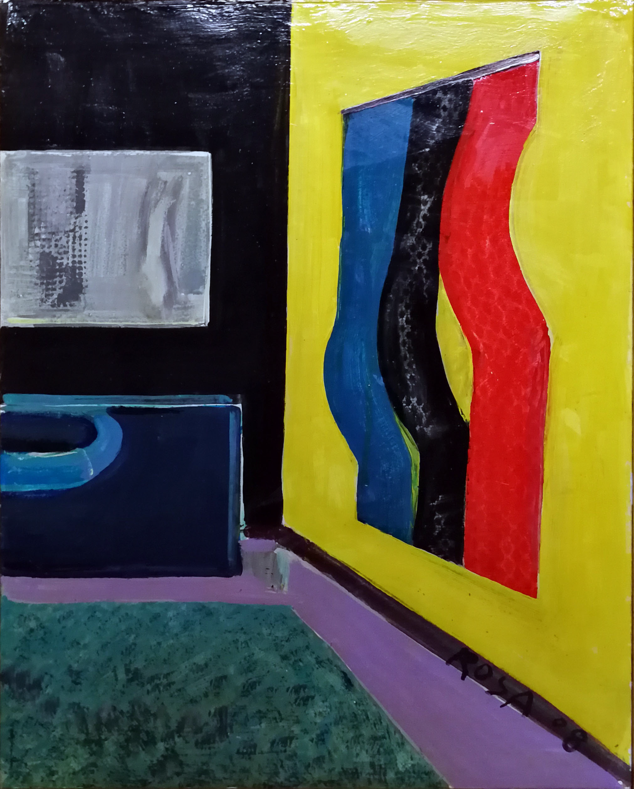 La seguente produzione torna a rappresentare accostamenti formali dalla statica visione che suggeriscono allineamenti a campiture cromatiche larghe e piatte.