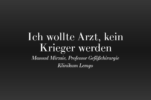 Der 1961 in Teheran geborene Perser und Mediziner Masoud Mirzaie, verheiratet und Vater einer 15-jährigen Tochter, arbeitet als Chefarzt und Leiter des Gefäßzentrums Lippe in Lemgo. Als Kind und Jugendlicher hat er das Leben im Iran unter dem damaligen Herrscher Mohammad Reza Pahlavi, der 1979 vor der Islamischen Revolution über Ägypten, Marokko, die Bahamas, Mexiko, die USA und Panama flüchtete, geliebt und genossen. Kurz nach dem Sturz des Schahs aber verließ er selbst sein Land, um sich eine neue Existenz in Deutschland aufzubauen.