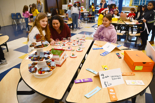 Norup 4th grade held its annual Holiday Market on Wednesday, December 18. Market Day marked the end of their Social Studies lesson on economics. Students in Mr. Bowering and Ms. Rawlik’s classes were tasked with coming up with their own business and creating a product to sell to schoolmates and family members during Market Day.