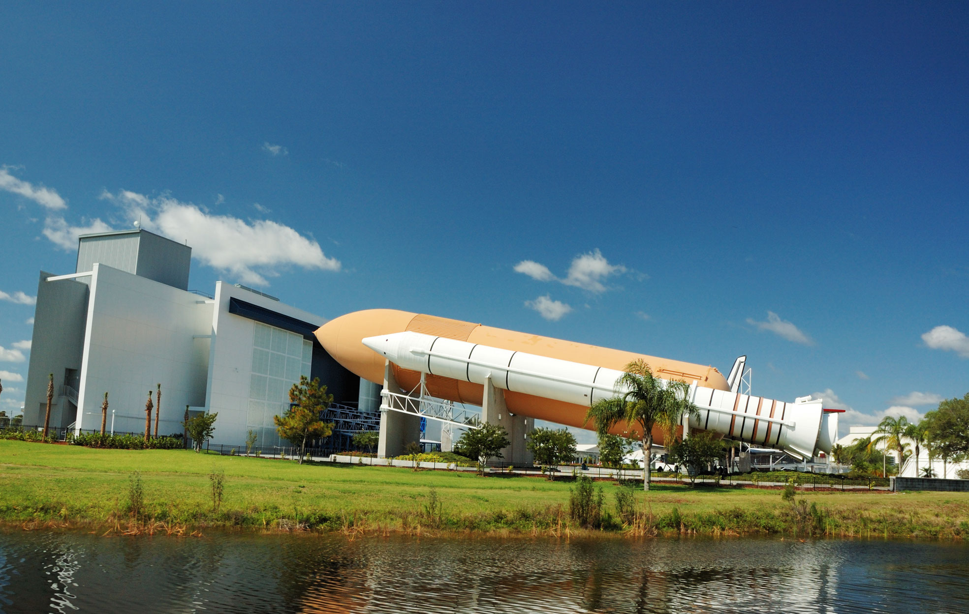 Florida's second most popular attraction is the Kennedy Space Centre at the nearby Cape Canaveral. The John F. Kennedy Space Center at Cape Canaveral, 46 miles (74km) southeast of Orlando on Florida's east coast, is one place in the state where fact is just as entertaining as fiction. Visitors to the centre follow the story of NASA's exploration of space through interactive exhibits, movies, and tours. Guests can tour a full-size replica of the space shuttle 'Explorer', walk through a giant model of the International Space Station module, and view films about Mars and the Pathfinder exploration. They can also explore historic authentic rockets, like that piloted by pioneer astronaut John Glenn, and marvel at the Apollo/Saturn Centre, which houses all the artefacts from the historic moon landing. The Space Center requires several hours to fully appreciate.