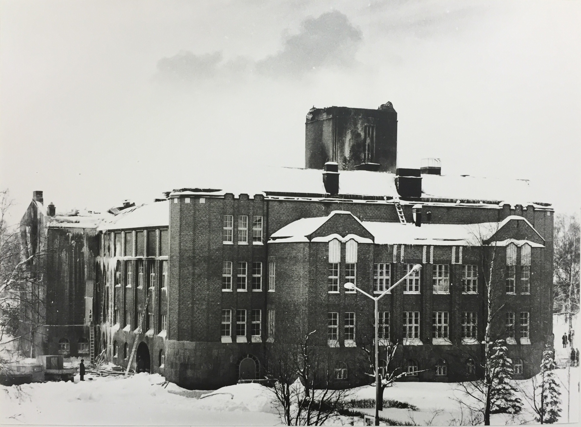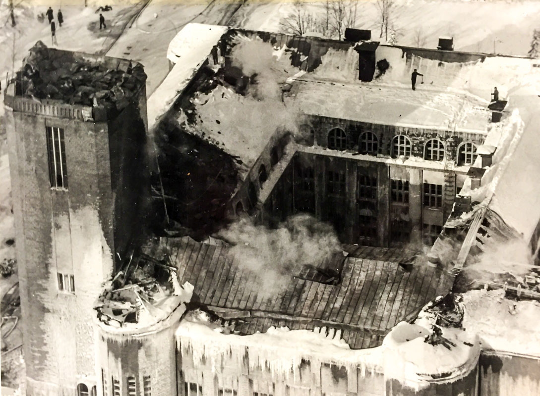 Typistynyt torni palon jäljiltä. Kuva Karjalaisen arkisto.