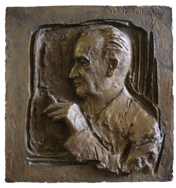 Joensuun kaupunginteatterin toisen kerroksen aulan seinällä oleva pronssinen, tupakoivaa miestä esittävä reliefi on jäänyt monelta huomaamatta. Kuvassa on Eliel Saarinen, ja sen tekijä on Suomen tunnetuin kuvanveistäjä, professori Wäinö Aaltonen. Joensuun kaupunki halusi juhlistaa 100-vuotissyntymäpäiväänsä 1948 ja tiedusteli Eliel Saariselta, olisiko hänellä reliefikuvaa sijoitettavaksi Joensuun kaupungintaloon. Saarinen otti yhteyttä Wäinö Aaltoseen, joka valmisti Saarisesta muotokuvan tämän lähettämän valokuvan pohjalta. Reliefin valoi pronssiin taidevalimo M. Virtanen Oy. Reliefi paljastettiin Joensuun kaupungin 100-vuotisjuhlassa, joka pidettiin 10.7.1949, siis 101 vuotta kaupungin perustamisen jälkeen. Kopion Eliel Saarista esittävästä muotokuvasta Aaltonen lahjotti Suomen Arkkitehtiliitolle liiton 60-vuotisjuhlan kunniaksi 1952