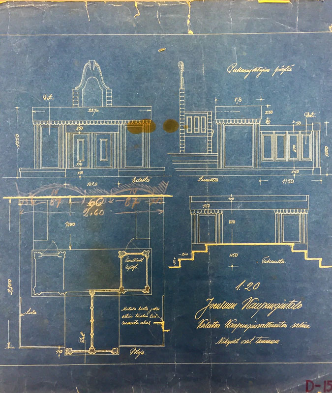 Tornin piirustuksia. Kuva Joensuun kaupungin keskusarkisto.