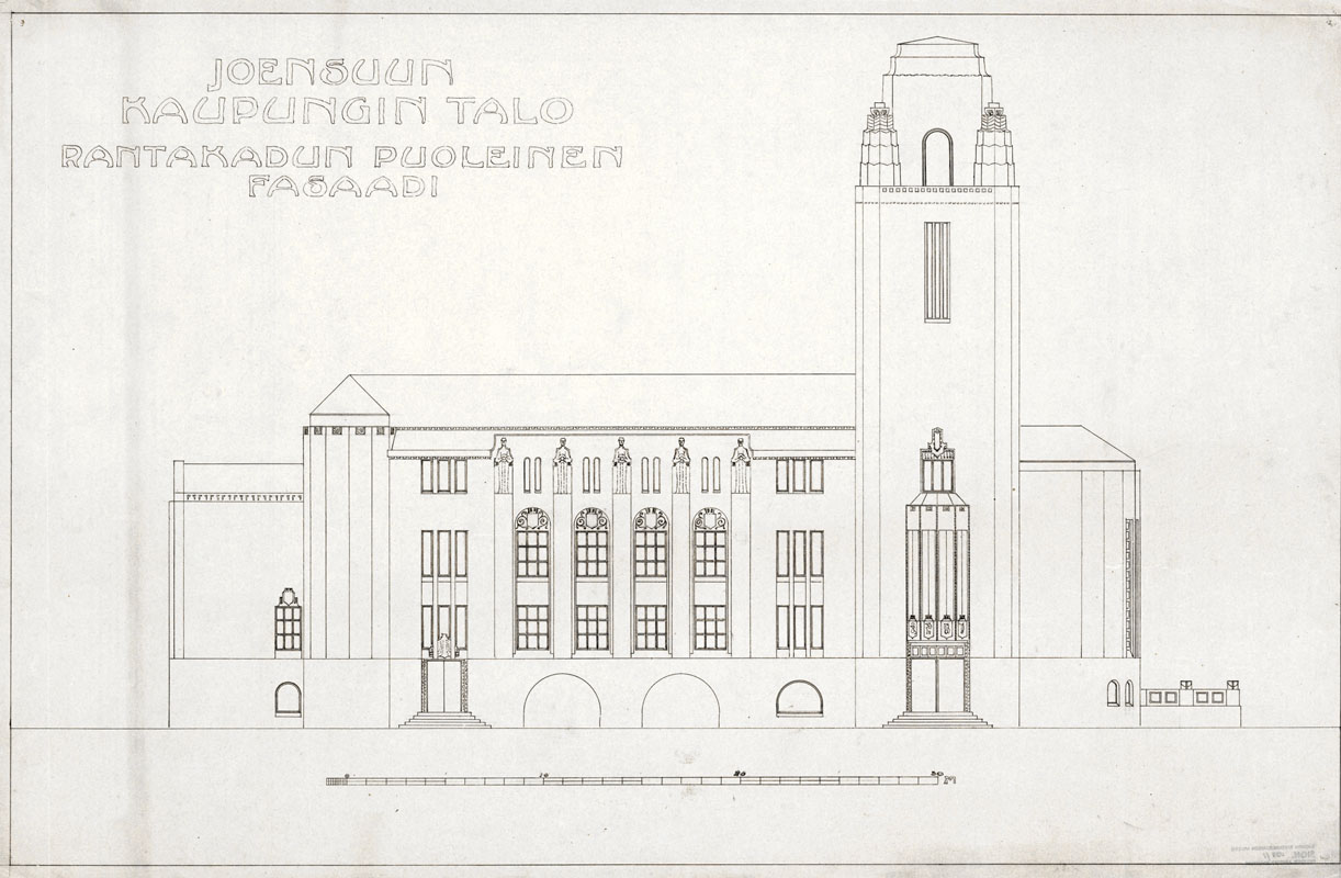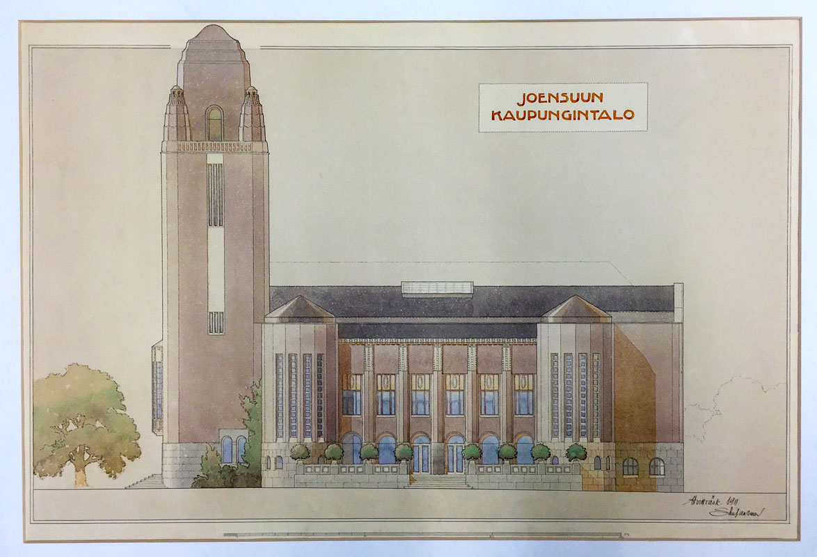 Saarisen arkkitehtuurikilpailun voittanut työ nimeltä " Joensuun kaupungintalo"