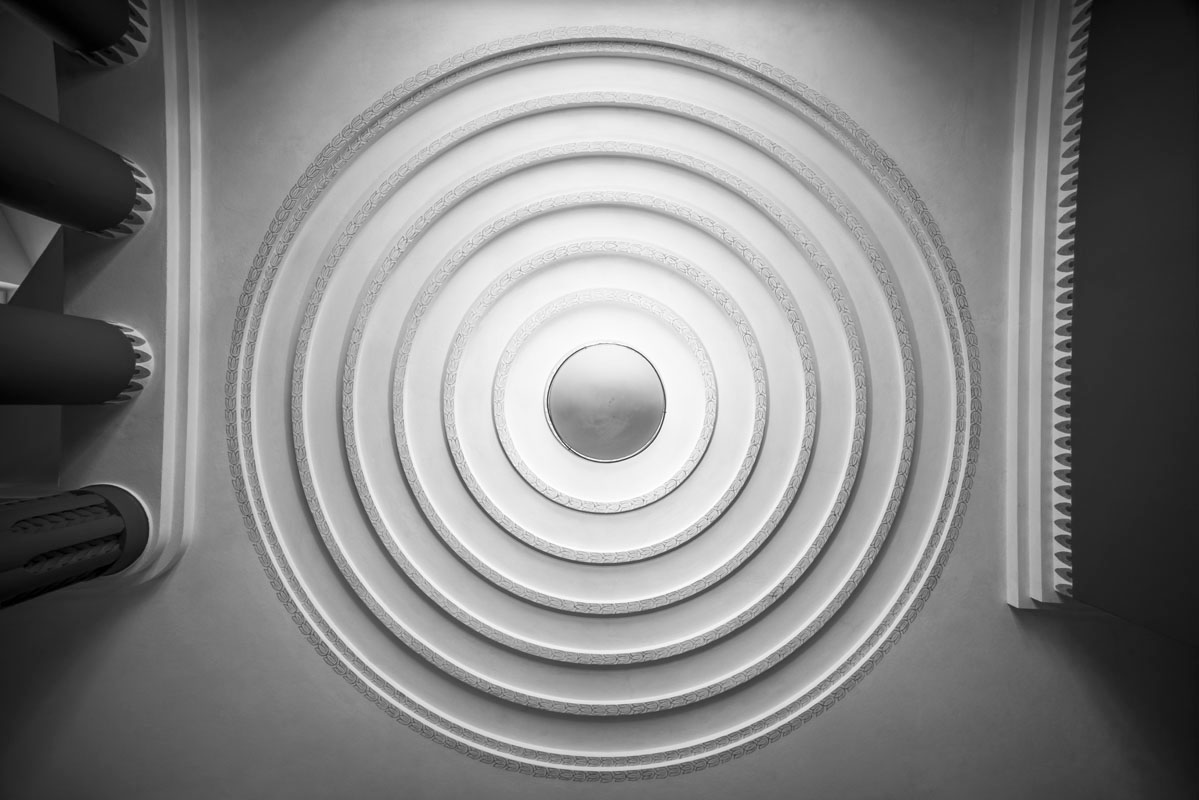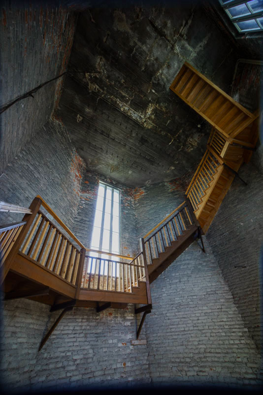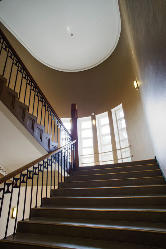 Porraskäytävä lämpiöstä kolmanteen kerrokseen ja yläkatsomoon.