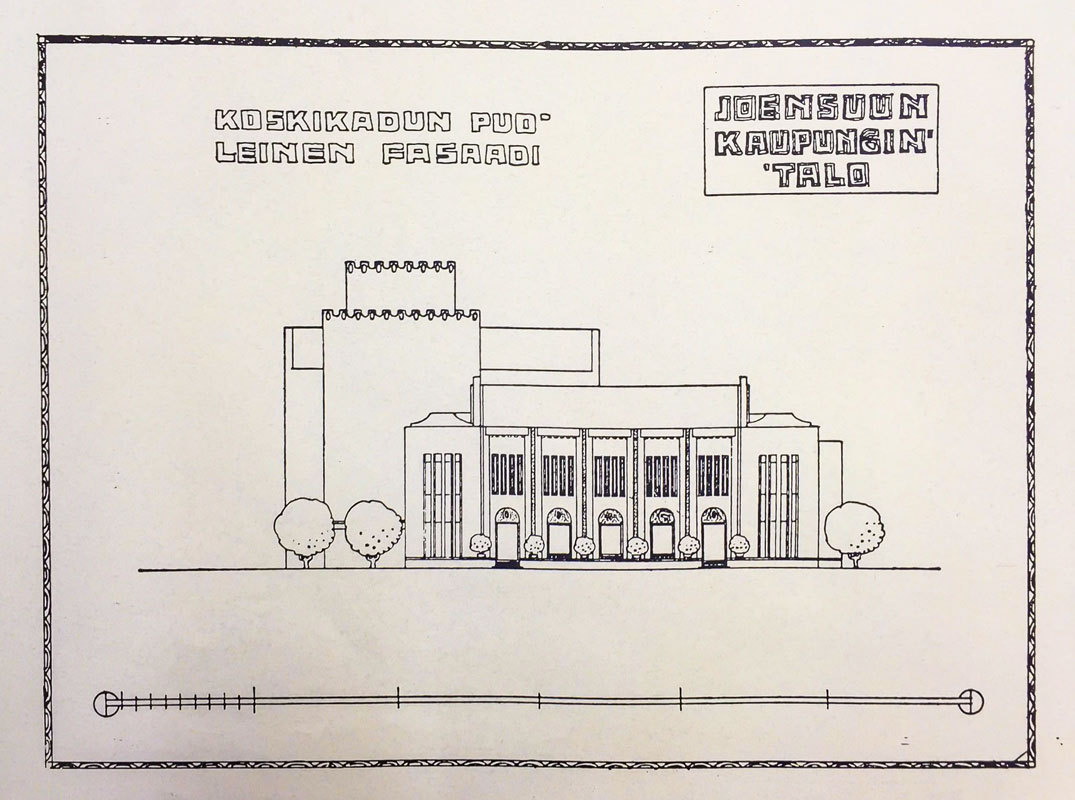 Koskikadun puoleinen julkisivu.Kuva Joensuun kaupungin keskusarkisto.