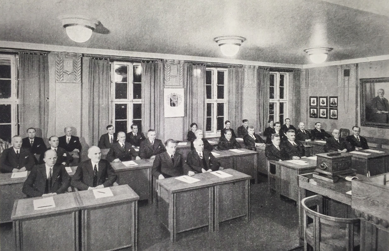 Joensuun kaupunginvaltuusto 100-vuotisjuhlaistunnossa 29.11.1948.