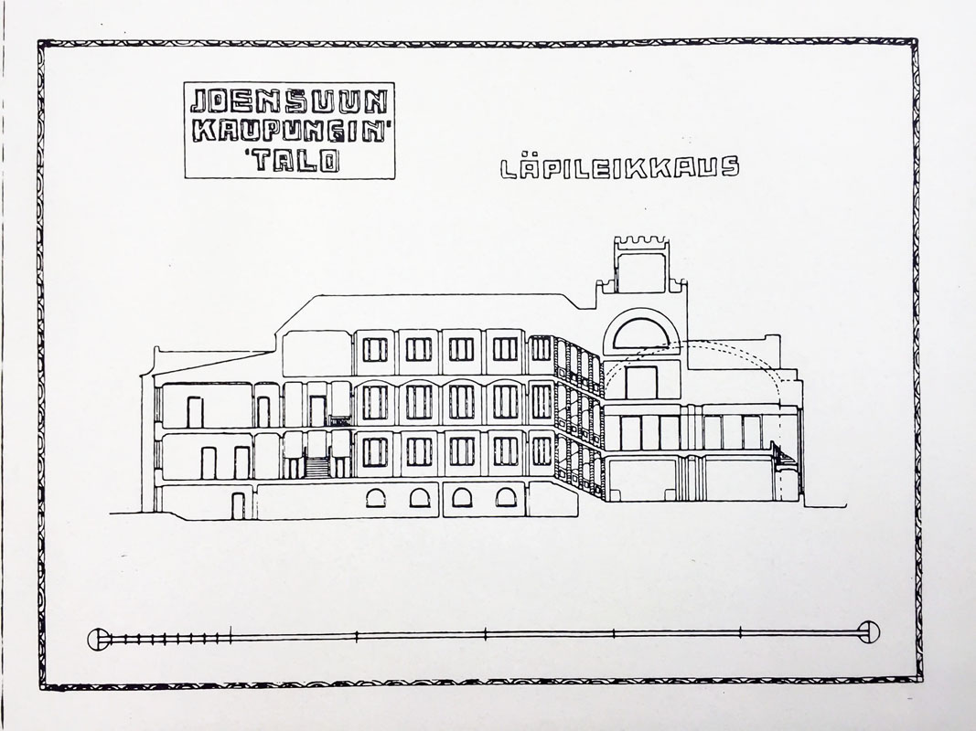 Leikkauspiirustus. Kuva Joensuun kaupungin keskusarkisto.