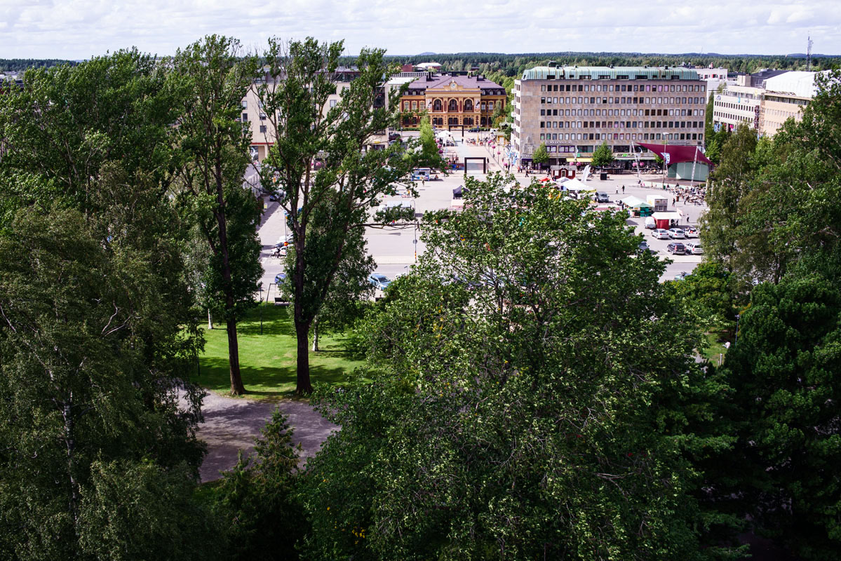 Näkymä kaupungintalon tornista pohjoiseen. Kuva vuodelta 2016.
