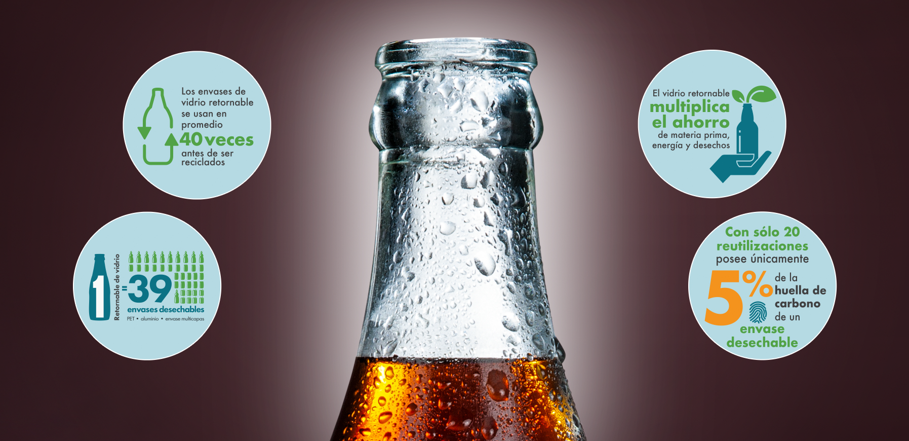 Por todas estas razones, la botella de vidrio retornable es considerada hoy el envase con menor impacto ambiental y el más amigable con la naturaleza.