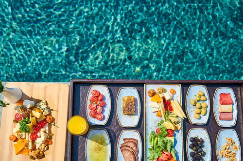 Created with images by enginakyurt - "Breakfast in luxury hotel pool" • lemanieh - "Footprints in the sand on the island of Bermuda" • chanchai - "Beautiful sea waves with foam of blue and turquoise in bali,Indonesia." • Miha Creative - "Natural moisturizer water toner herbal extract with shadow leaves. Summer exotic banner. " • icemanphotos - "Beachfront sunset. Beautiful panoramic landscape, colorful golden sunlight over calm sea waves splashing softly on idyllic sandy beach. Amazing sunrise landscape, summer nature, peaceful morning coast" • 4ChaN - "砂丘に現れる風紋" • Евгения Рубцова - "Rippled transparent fresh blue green water gel surface in swimming pool with flecks, waves, shade. Healthy relaxation in sunny summer. Vacation spa coast sea, natural concept. Flat lay. Place for text"