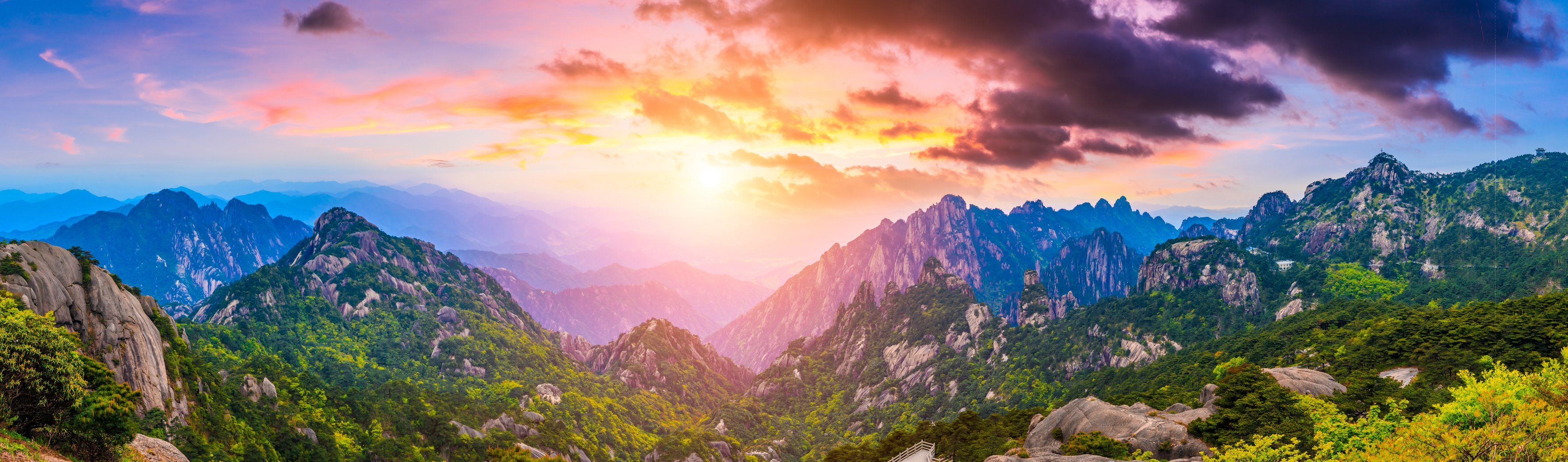 Created with images by Joshua - "Colorful Sunrise Over Mountain River" • aboutfoto - "Panoramic view of the sunrise in the Tatra mountains" • A2LE - "colorful sunset on top of austrian mountain alps" • ABCDstock - "Beautiful Huangshan mountains landscape at sunrise in China." • boule1301 - "Mountain landscape Ponta Delgada island, Azores"