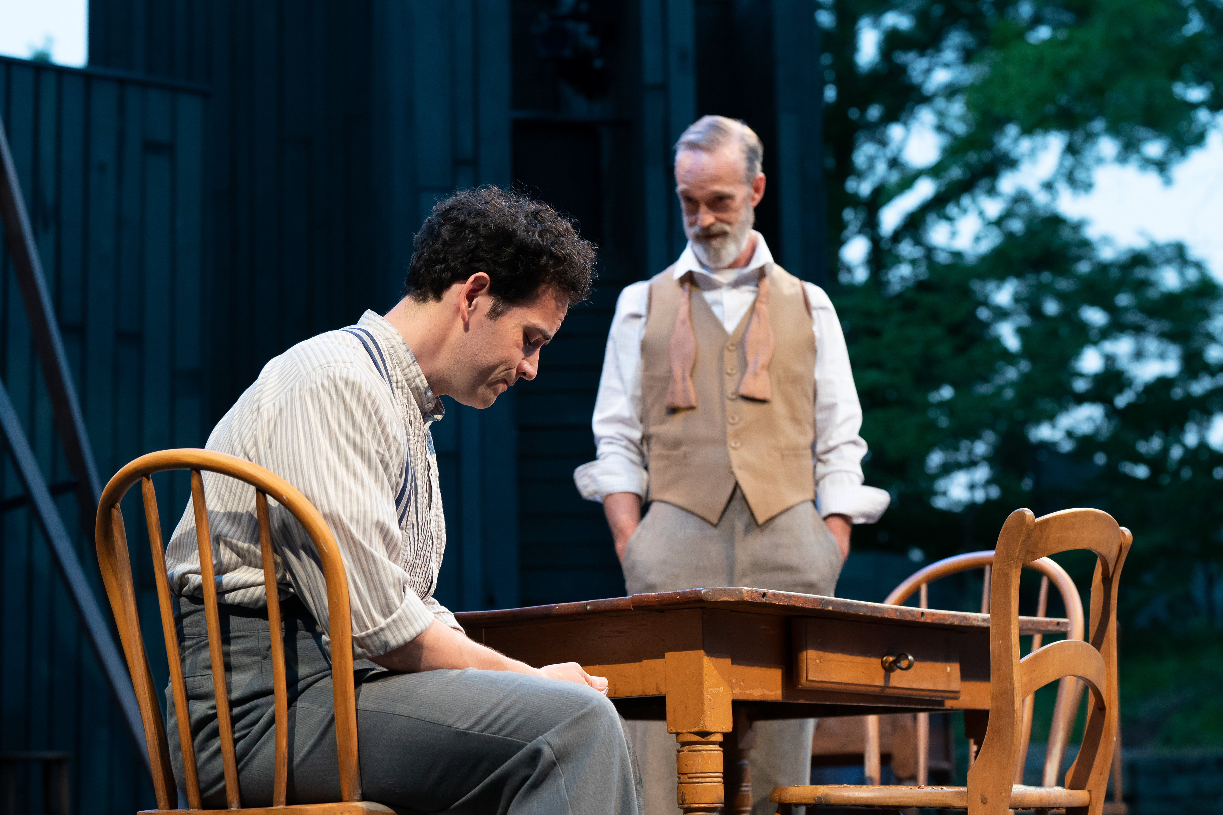 At 9:30, Bill Warren, the town constable, comes by and greets Mr. Webb. He notes that Simon Stimson "is rolling around a little " Simon strolls unsteadily down the street; he passes both men without speaking. Mr. Webb asks Bill to help stop George from taking up smoking. The constable says goodnight and departs. Mr. and Mrs. Gibbs talk about Mr. Stimson and go to bed. End of Act 1.