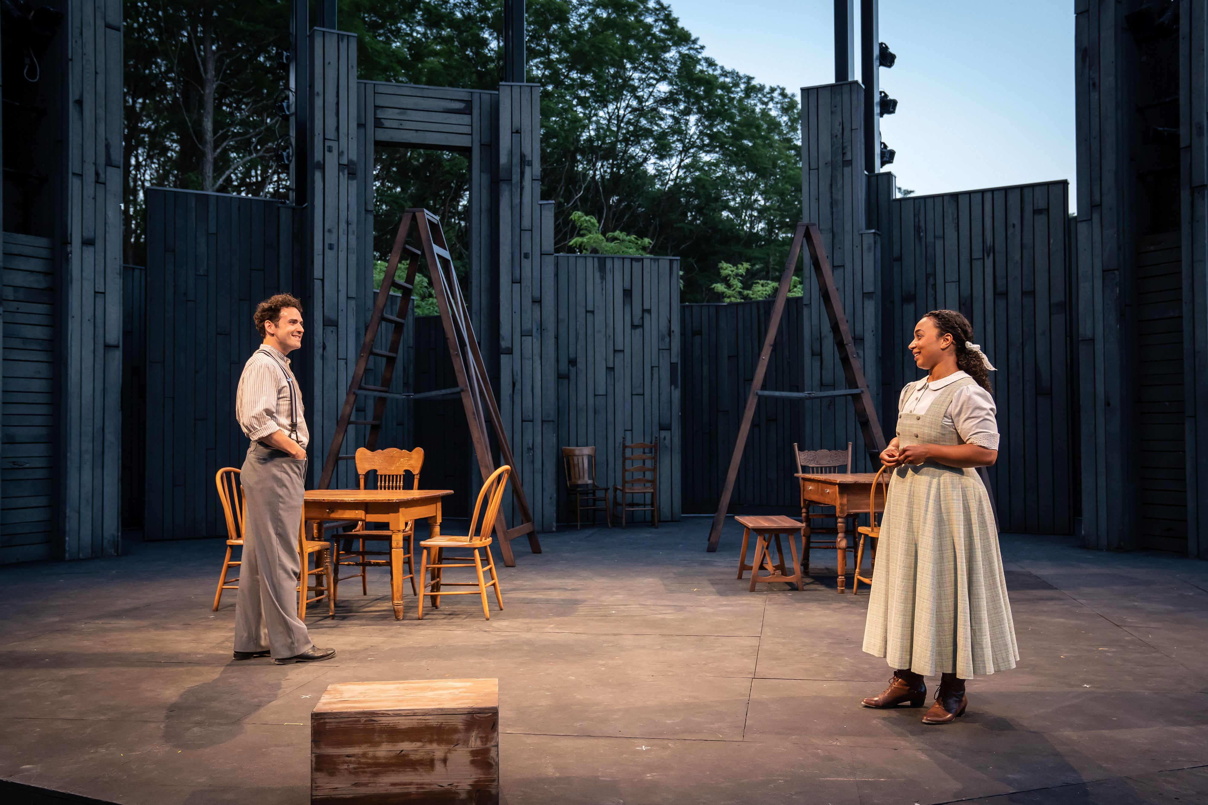 Act 2 is called "Love and Marriage." It is now July 7. 1904. The stage is about the same. Mrs. Gibbs' garden is on one side and Mrs. Webb's on the other, each drenched with heavy rain. As in the first act, the two women come down to make breakfast in their respective kitchens. It is the day of Emily and George's wedding.