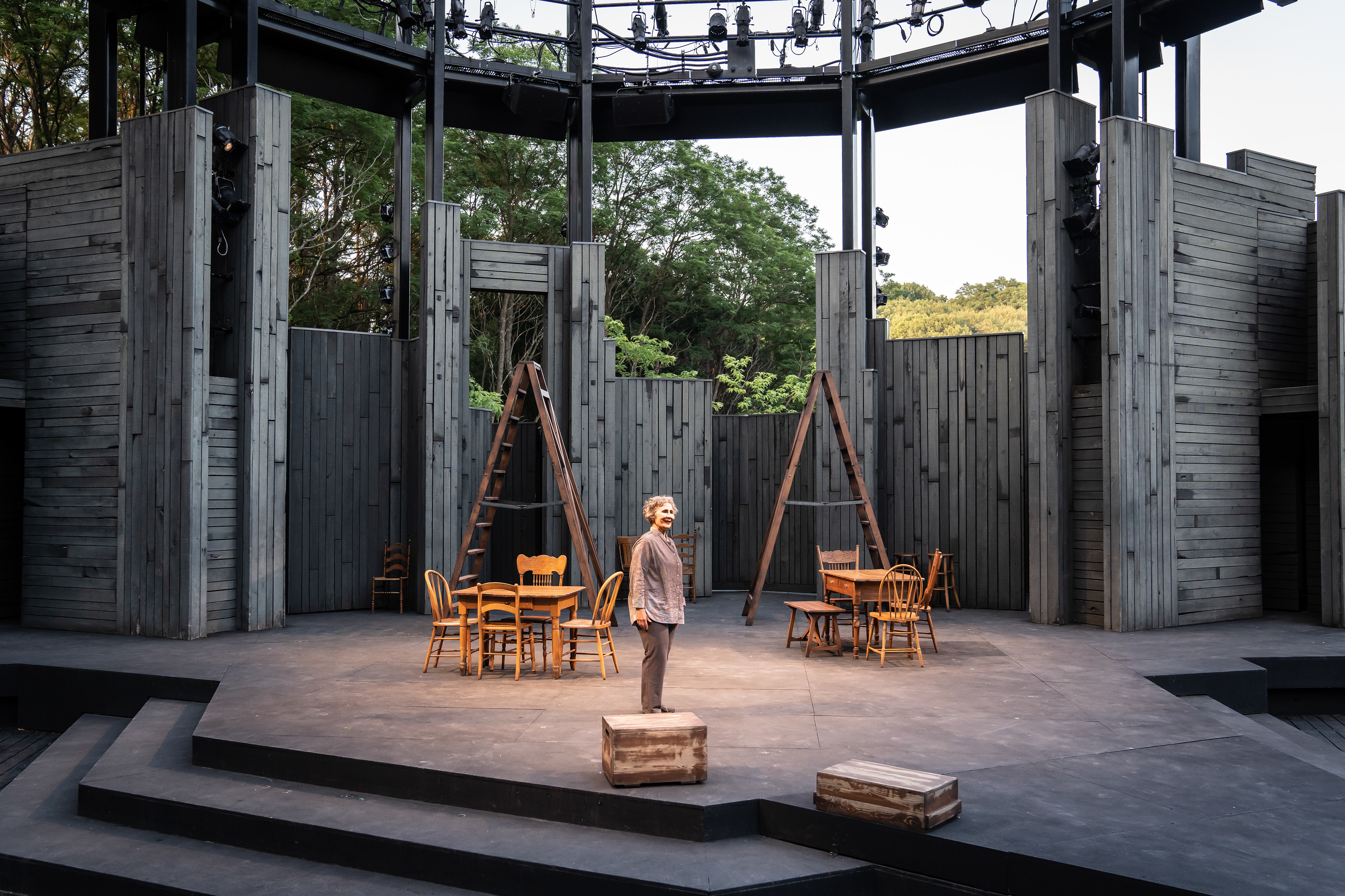 The Stage Manager points to an imaginary spot downstage and explains that Doc Gibbs lives in this house. Mrs. Gibbs' garden, she explains, is in the corner of the stage. Next door is the Webbs' house and garden. It is a nice town, the Stage Manager explains, even though "nobody very remarkable ever came out of it " Tombstone dates, she adds, go back to the 1670s and 80s.