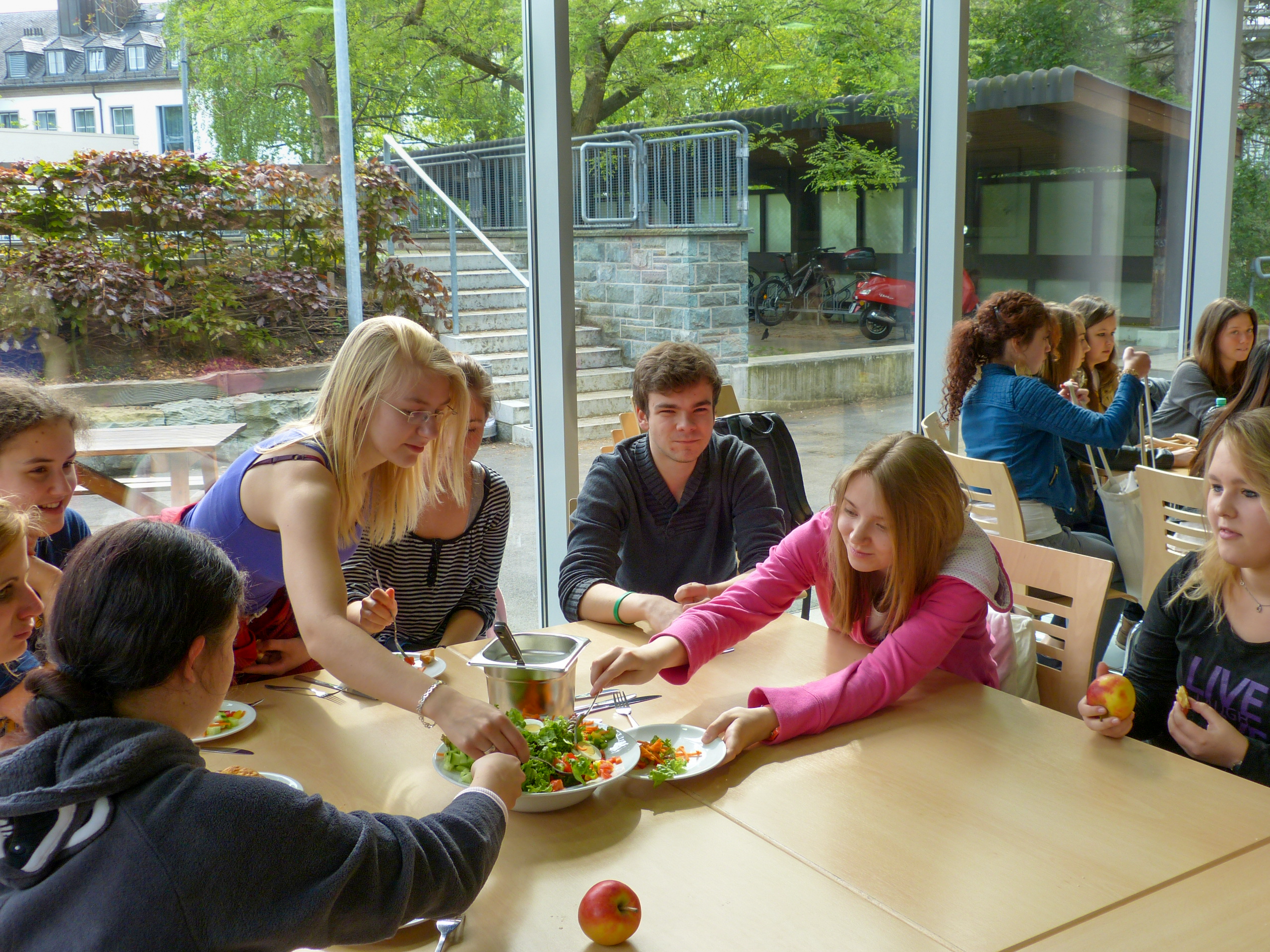 Die Engelsburg arbeitet nach dem Konzept der offenen Ganztagsschule mit einer großzügigen Cafeteria und einem breiten AG-Angebot am Nachmittag.