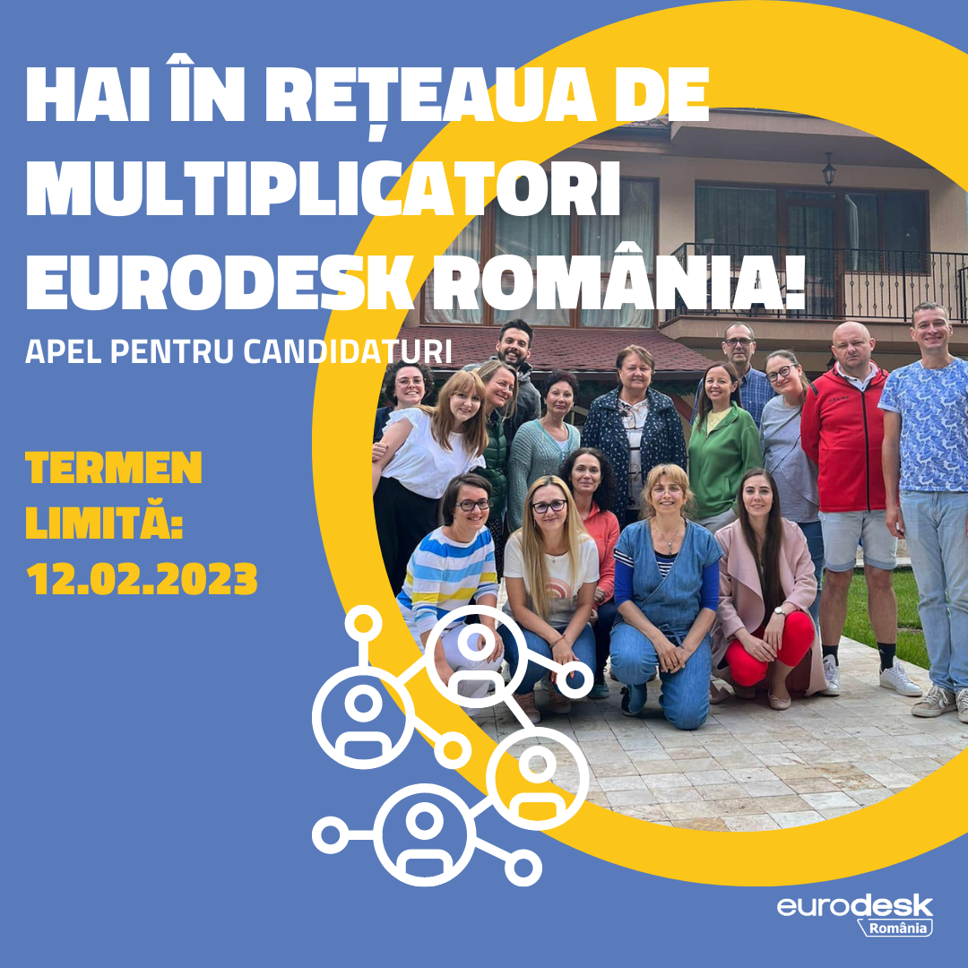 - Ne vom extinde rețeaua de multiplicatori Eurodesk România, care momentan este formată din 20 de multiplicatori. Am lansat deja un apel pentru candidaturi pentru noi membri în cadrul rețelei de multiplicatori. Mai multe detalii sunt disponible deja pe website-ul nostru.