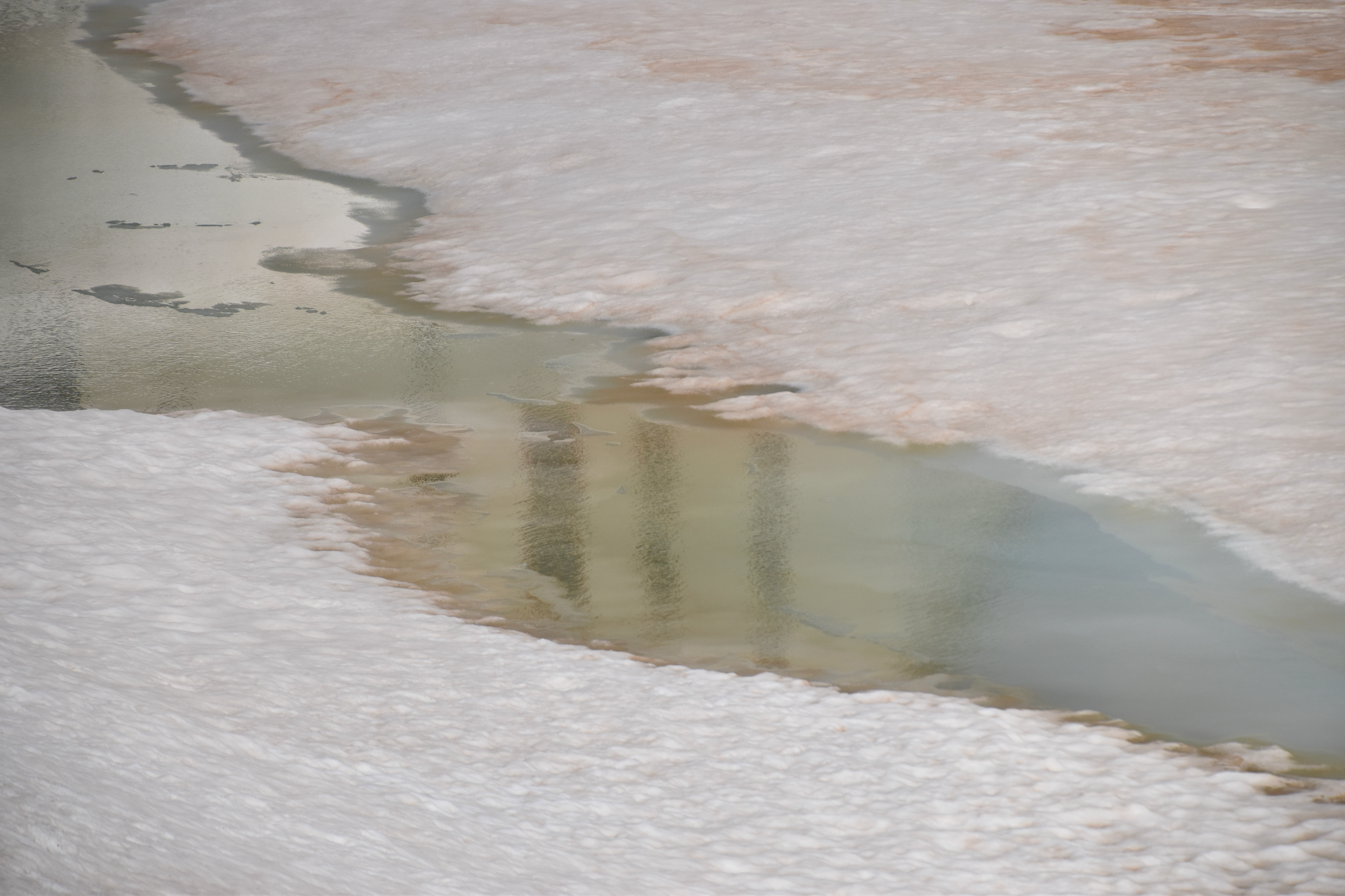 Ci-dessus : le lac encore bien gelé au col du Grand-Saint-Bernard.