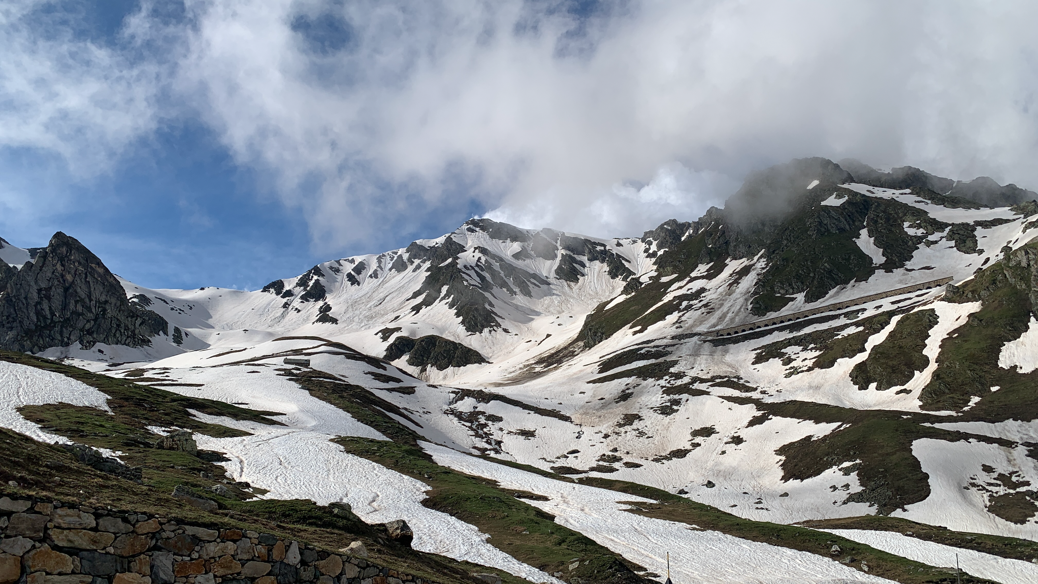 Des l’entrée du Valais les nuages se dissipent, le soleil vient lentement à bout des derniers vestiges de neige et de glace.