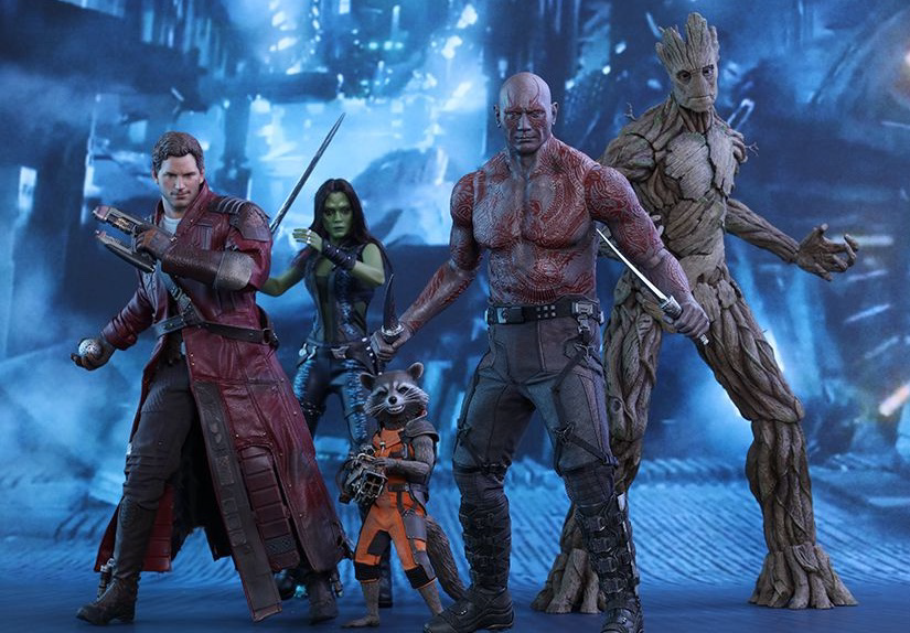 Star-Lord, Gamora, Rocket, Drax, Raket, Drax, Groot en Thanos zijn in een beperkte oplage van 1:6 van de bekende beeldjesfabrikant Hot Toys in museumkwaliteit.