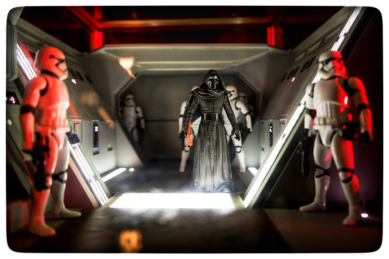 Of sommige shots uit de trailers voor "Rogue One: A Star Wars Story" slechts promofoto's waren of werden geschrapt tijdens de veelbesproken postproductie van de spin-off, zullen we waarschijnlijk nooit weten. Eén ding is zeker: Ze ontbreken in de afgewerkte film. Helaas is de scène waarin de Stormtroopers op Scarif patrouilleren ook helemaal weggelaten. Het diende als sjabloon voor dit diorama in de aanloop naar de filmrelease van "Rogue One".