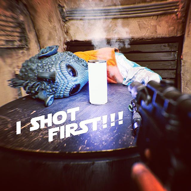 Dit diorama is gebouwd tijdens een schoolstage door Max Karsch en Julian Otten tijdens een schoolstage. Als Pasen-Egg hebben ze hun namen verstopt in het Star Wars script op de muur aan de rechterkant van het huis. In de scène uit de film "Rogue One", schiet Jyn Erso een Imperial Droid, die precies op K-2SO lijkt, op de planeet Jedha uit de invloedssfeer tijdens een schietpartij met de Imperials. Pas na het schot beseft ze dat het het teamlid K-2SO had kunnen zijn. Maar dan komt hij om de hoek en vraagt haar verbaasd: "Hoe wist je dat ik het niet was?"