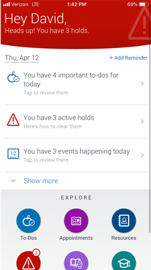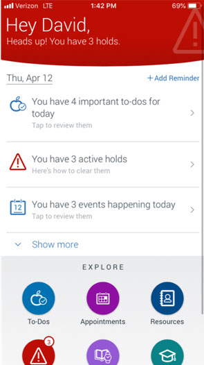 - Personalized home screen that “speaks” directly to the student using Navigate Student