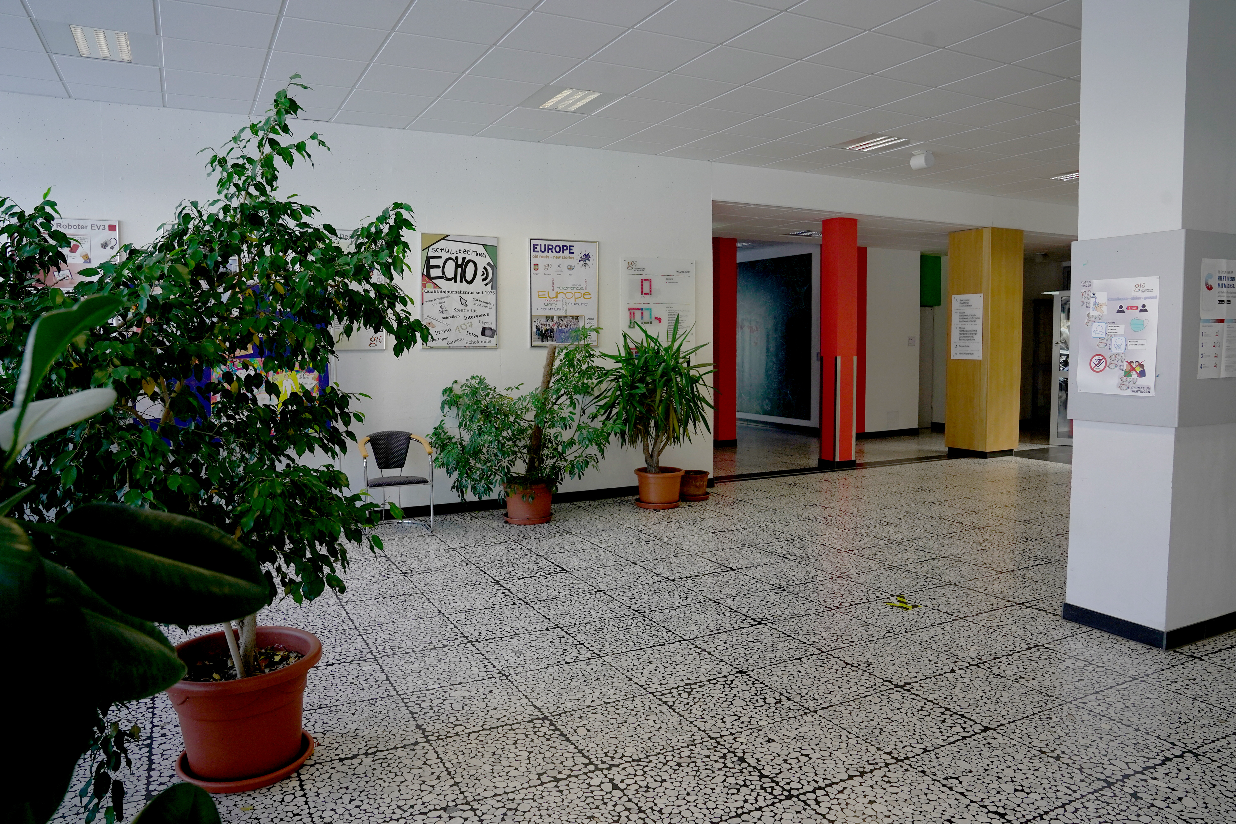 Die Pausenhalle wird allerdings auch für Veranstaltungen genutzt. Sie ist mitunter der letzte Raum, in dem man sich in seinem Schulleben länger aufhält, denn hier werden die Abiturzeugnisse feierlich überreicht.