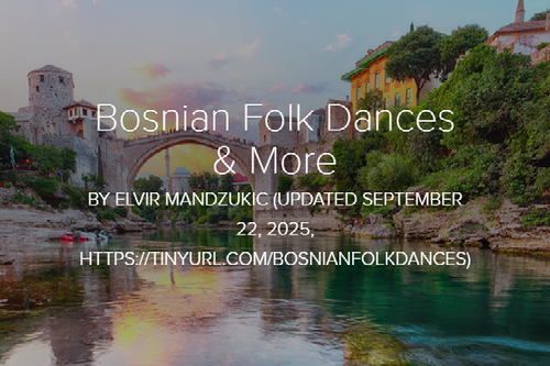 These examples illustrate diverse forms and interpretations of Bosnian folk dance, especially the iconic circle format "Kolo," as well as performances inspired by the music and spirit of Bosnia's heritage.