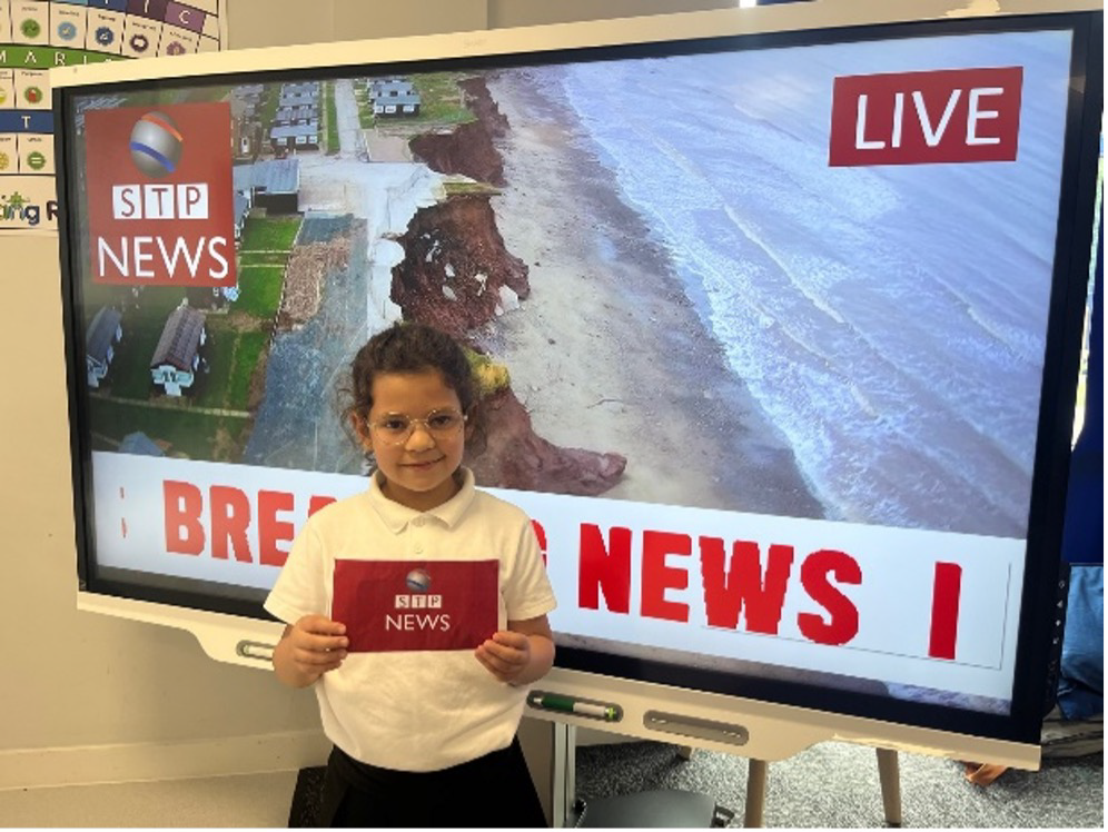 We enjoyed using Now Press Play to take us on a virtual ‘pirate’ adventure using immersive audio and were lucky enough to be visited by the RNLI who showed us their rescue equipment and taught us how to stay safe around water. We also learnt how erosion changes the shape of the coastline and created news reports to share the impact erosion has on communities.