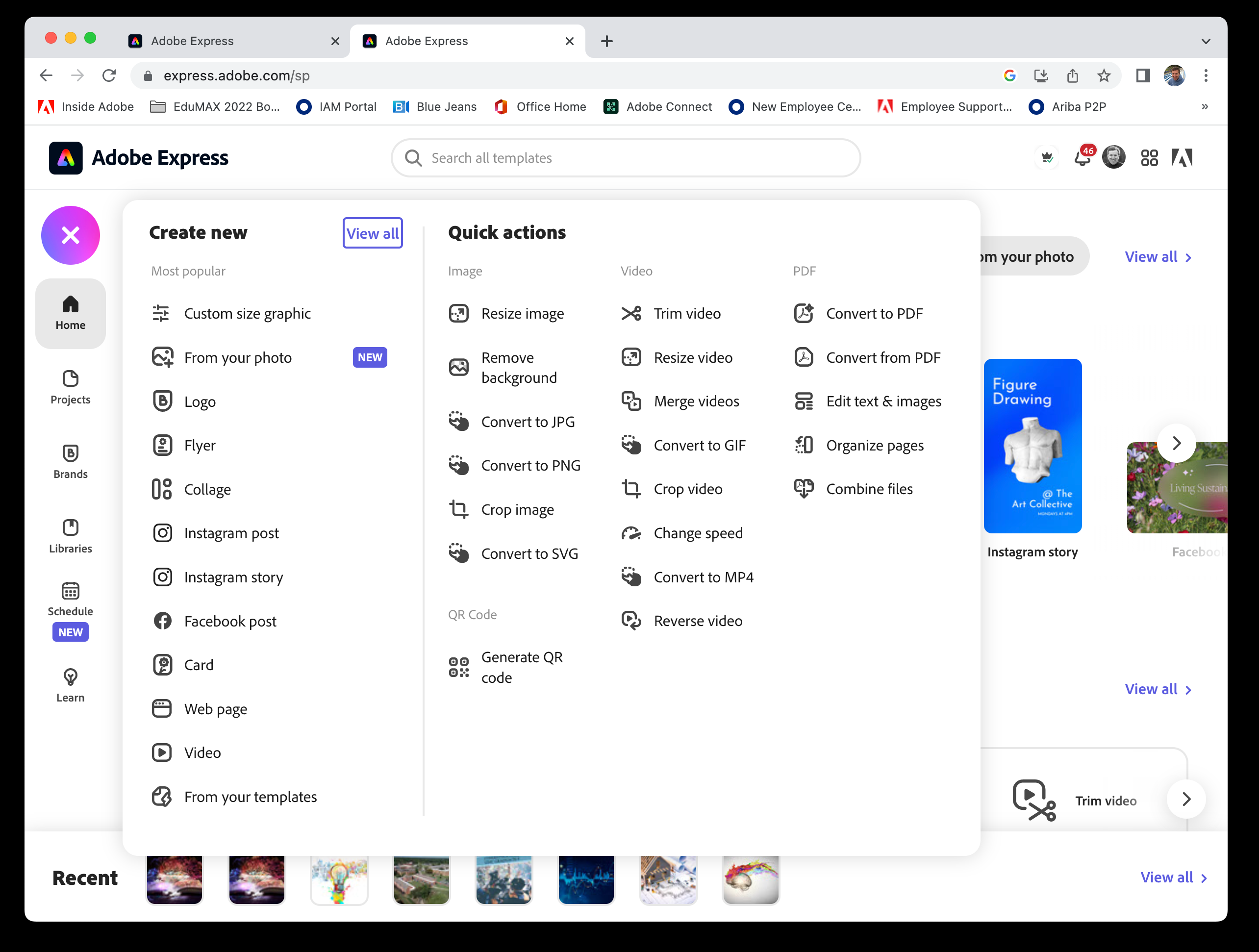 - Adobe Express now includes two-click "Quick Actions" for the most widely used editing functions for images, videos, and PDF.