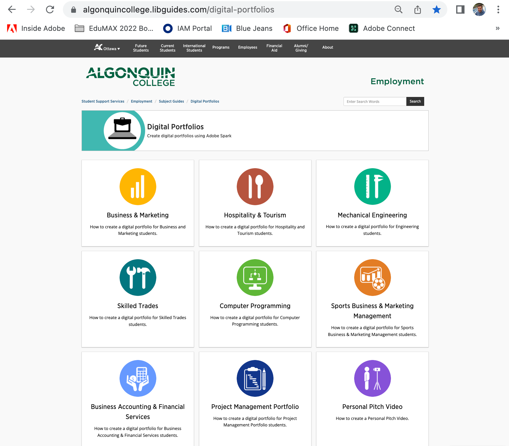 Cultivating these outcomes to prepare students for the world of today and the workplace of tomorrow hinges increasingly on digital, information, and networked technologies. Such preparation aims to moves students away from being passive consumers of other people's content toward becoming active creators of their own ideas. This is why creativity tools such as Photoshop, InDesign, Spark, Premiere Rush, Acrobat, and Illustrator are equally relevant in every course and discipline.