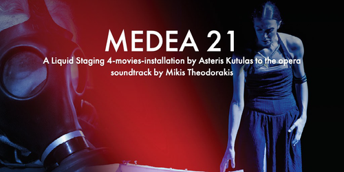 Precisely synchronized with this MEDEA 21 music, the four films representing the following four levels (layers) of the complete work, MEDEA 21 (45min), on the four screens:
