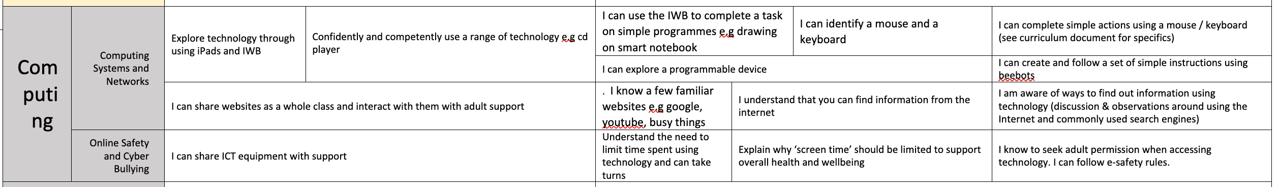 The computing curriculum document has been organised into 5 main areas: