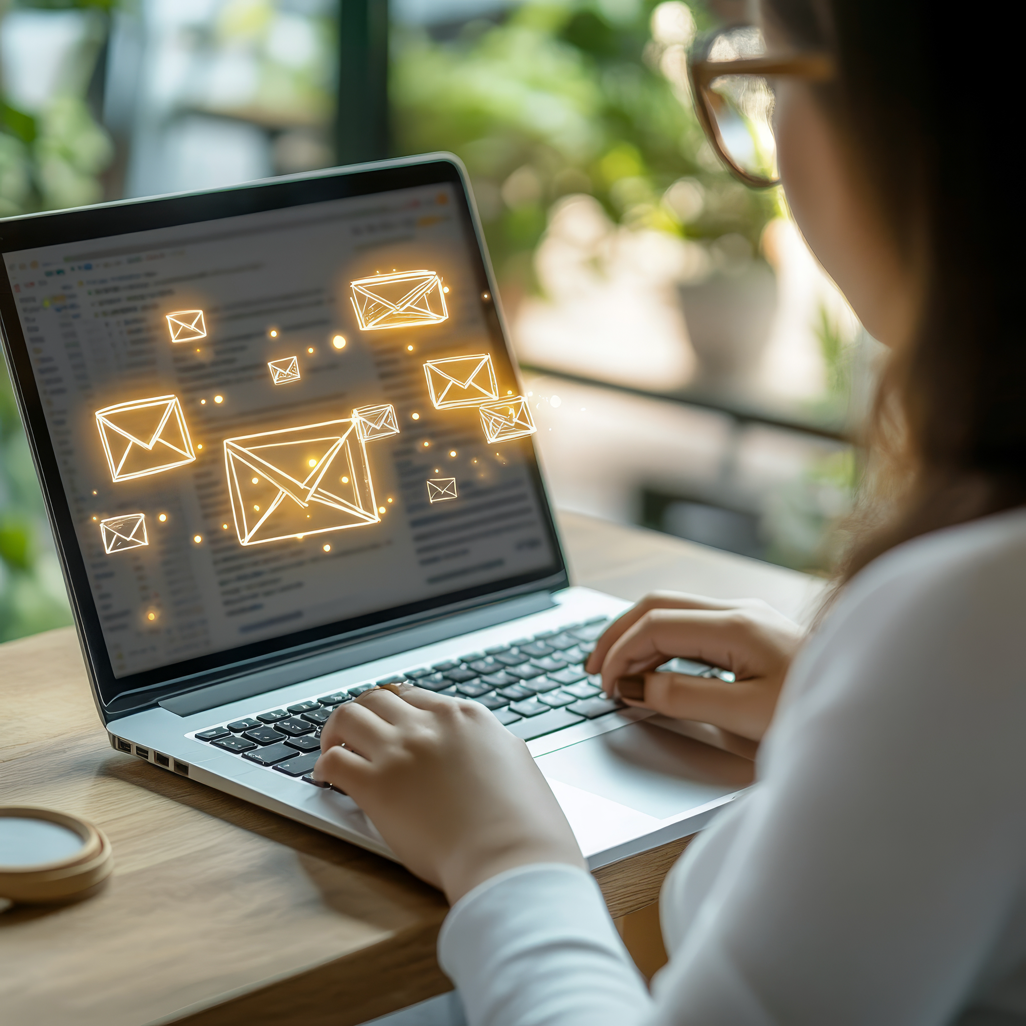 使用した画像の情報 : Tanuha - "A woman sitting at a laptop sending emails. Email marketing and newsletter concept." • tonktiti - "Close up woman hand using keyboard laptop with email icon flying and colorful bokeh light abstract background." • Monster Ztudio - "Email marketing and newsletter concept. Hand of man sending message and laptop with e-mail icon" • MclittleStock - " workspace with newsletter screen computer" • Summit Art Creations - "newsletter signup page on computer for customer to subscribe snugly newsletter update information to subscriber"