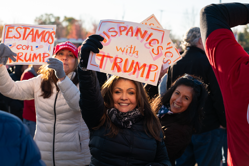Two women line up waiting to get into the event and listen to president-elect Trump speak. There were a large number of women in attendance at the rally.