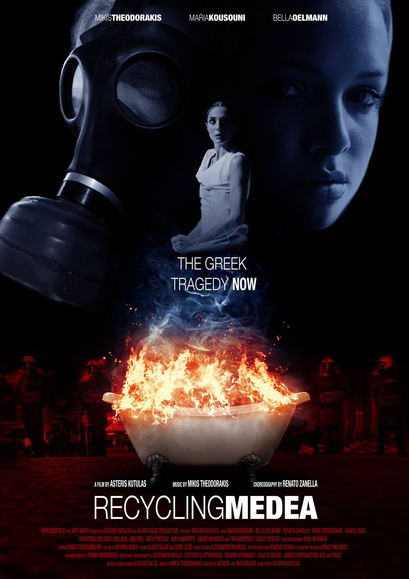 Hollywood Greek Reporter: ... Another film that deserves mention is Asteris Kutulas’ film ”Recycling Medea”. It is a fascinating motion picture adventure, a cinematic canvas that mixes ballet dancing with opera music composed by the iconic Mikis Theodorakis, narration, images of youth protests in the streets of Athens and a character inspired by Anne Frank. Visually stunning and masterfully choreographed by Renato Zanella, the dancing vividly conveys an array of feelings ranging from love, hate, revenge and ultimately Media’s denial of the unbearable crimes she has committed. (24 June 2015)