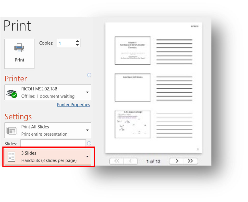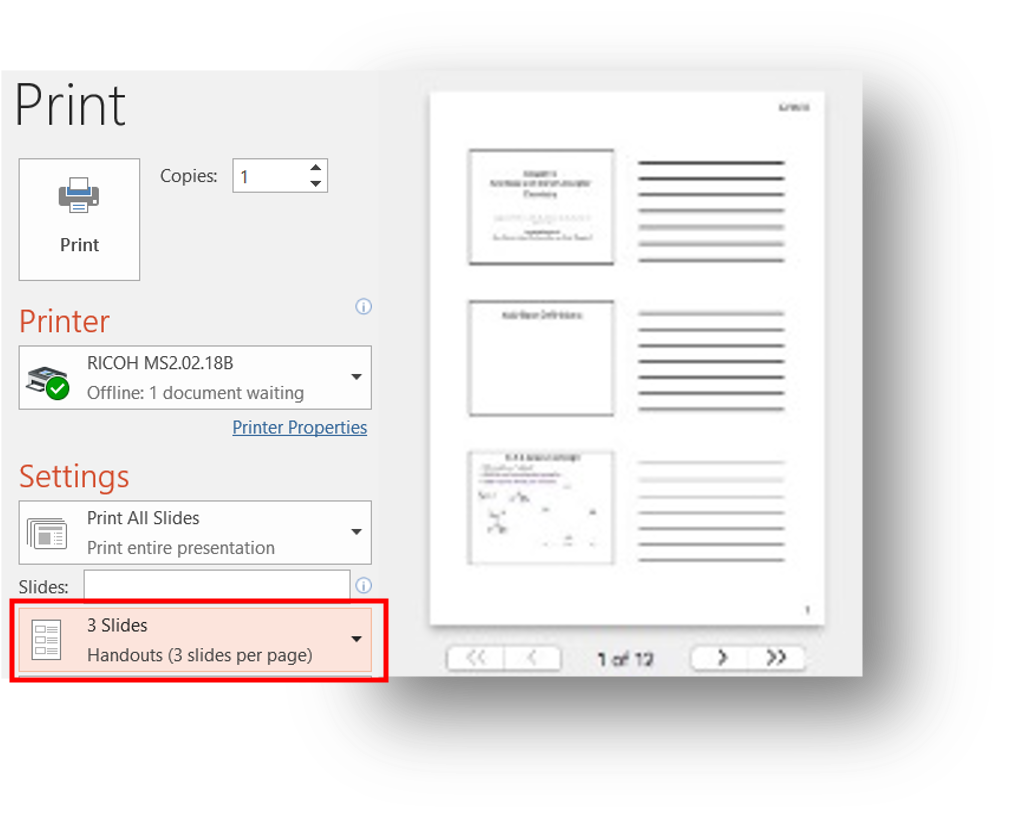 How to print for writing on slides: