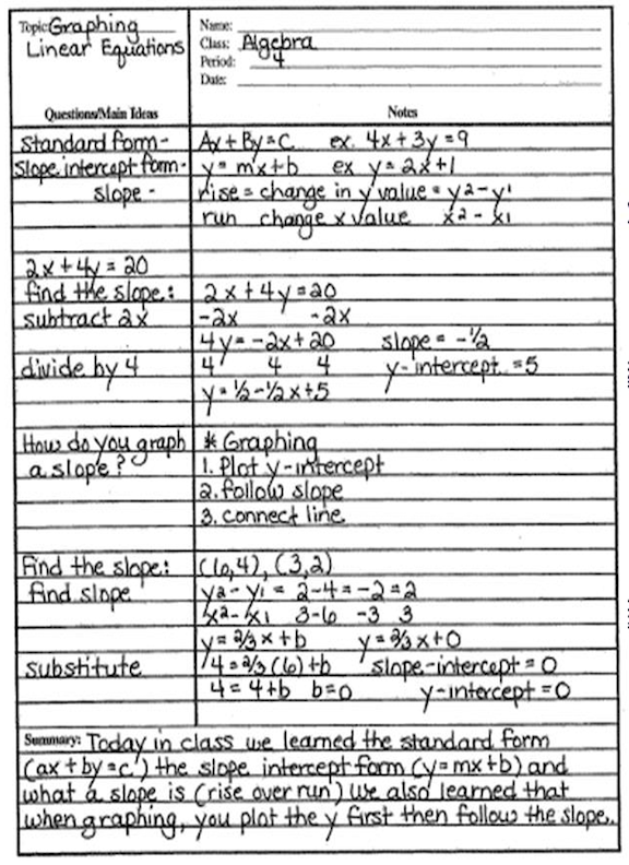 Cornell Notes Examples: