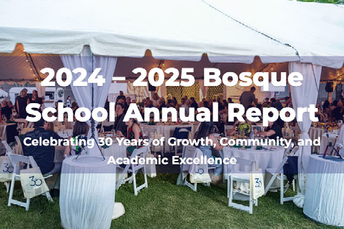Looking ahead, Bosque School is stronger than ever and poised for continued excellence. As you will learn more about in our upcoming Strategic Directions announcement, we are charting an ambitious path forward that will build upon our 30-year foundation while embracing new opportunities to serve our students and community.