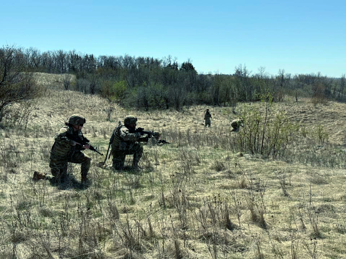 Soldiers from the 131st Military Police Battalion practiced cover and concealment at Camp Davis, Valley City, North Dakota, on May 4. (U.S. Army National Guard photo courtesy of the 131st Military Police Battalion)