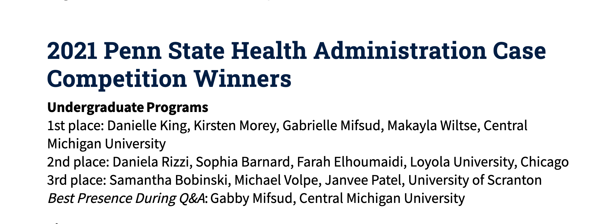 Email Dr. Mark Taylor, taylo2mr@cmich.edu (MHA, DHA, certificates), Dr. Nailya DeLellis, delel1no@cmich.edu (undergraduate) or professor Dr. Mark Cwiek, cwiek1ma@cmich.edu.