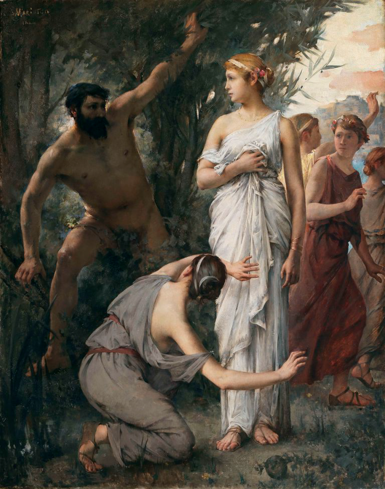 “Quando i due dei entrarono nella casetta e attraversarono la soglia, chinando il capo, il vecchio li fece accomodare sopra una panca, sulla quale Bauci premurosamente distese un panno ruvido. Poi smosse sul focolare la cenere tiepida, ravvivò il fuoco del giorno prima. [...] Passa appena un attimo e il focolare caldo licenzia i cibi e si riporta il vino non molto invecchiato. Gli dei [...] dissero: “Noi siamo dei e i vostri empi vicini sconteranno la pena” (Metamorfosi, Libro VIII)